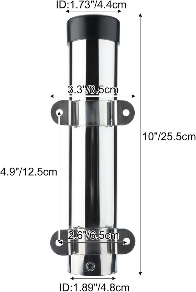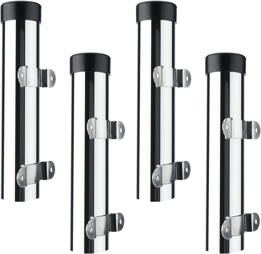 Boat Marine Fishing Rod Holders Stainless Steel Side Mounted Transom Mounted Rod Holders with Weld Brackets Mirror finished 316 Stainless steel side mount marine rod holders with stainless side mount brackets. Rubber insert to protect your fishing rod from any wear against the stainless surface. Package Included: 4-Pack Boat Fishing rod holders with Weld Brackets Stainless stopper pin built into the base of the rod holder to located the rod end into position. These fishing rod holders can be mounted vertically or at any desired angle, onto a flat vertical surface Specifications: Tube Length: 10" (256mm) Inside diameter 1-5/8"(42mm) Outside diameter 2"(51mm)