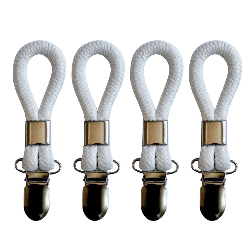 4Pcs Braided Cotton Towel Clips Clothes Pegs Kitchen Bathroom Kitchen Towel Features: and high and not easy to break, can be used for a long, and is durable. Easy to use: This cotton rope clip can be used in the home. The metal and cotton cord material ensures that the towel is securely held in place and prevents the surfaces from being scratched. Wide use: These towel clips are great for storing microfiber cloths and towel in kitchen and bathroom cabinets. Save space: Small, for saving kitchen or bathroom space. Suitable occasions: Suitable for bedroom.bathroom,kitchen and other places. Specifications: Blend Cotton+Metal Styles: As the picture shown Size: approx.13x0.98x1cm/5.12x0.39x0.39in Color: As the picture shown Quantity: 4Pcs Package Includes: 4xTowel Clips (other accessories in the picture is not included.) note: Please allow 0-1cm error due to manual measurement. please make sure you do not mind before you bid. Due to the difference between different monitors, the picture may not reflect the actual color of the item. Thanks!