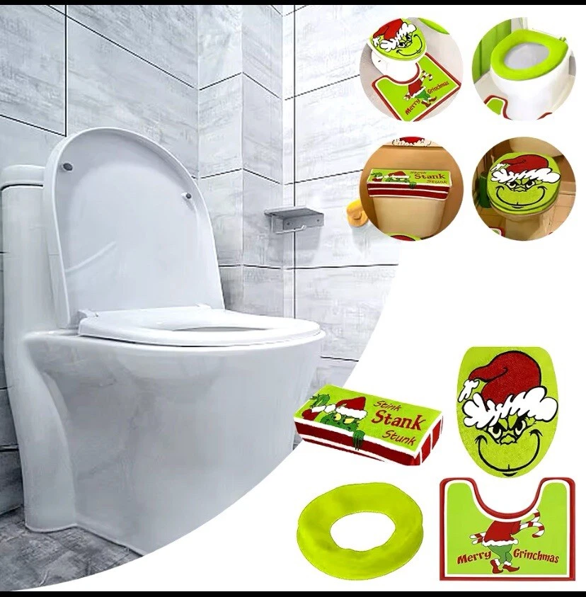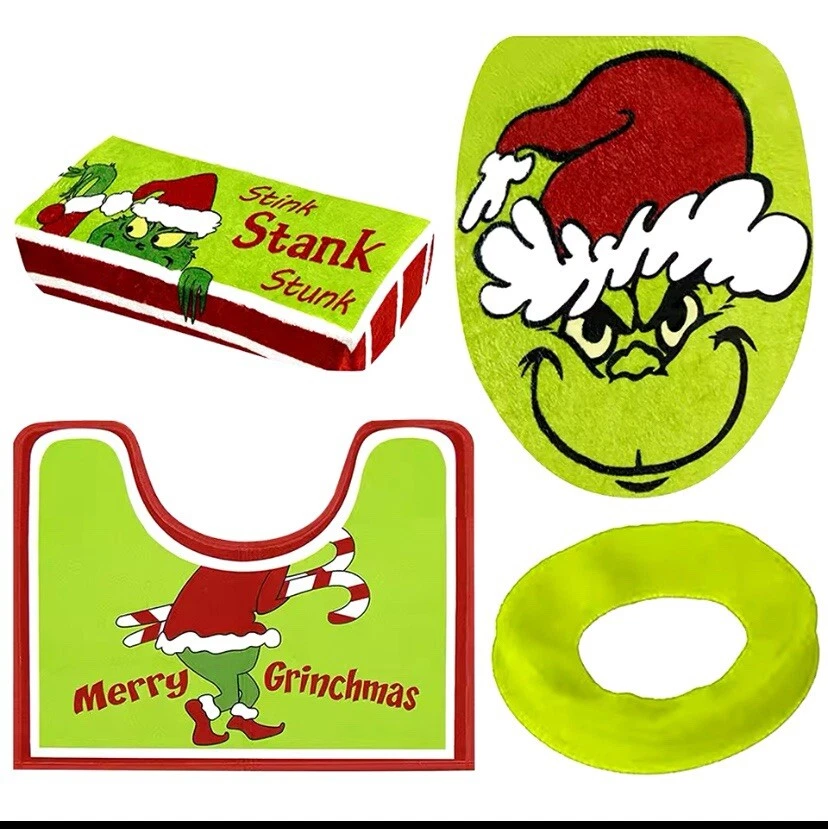4Pcs Christmas Grinch Toilet Seat Cover Set with Tank Cover Xmas Bathroom Sets
