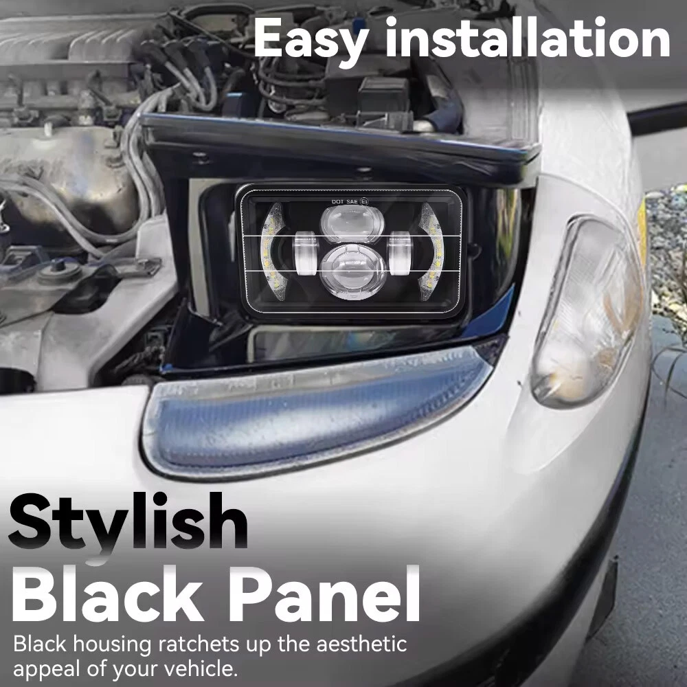 Package included: 2PCS 4x6 inch Led High Beam 2PCS 4x6 inch Led Low Beam 4PCS H4 plug adapters Description: Power: 60W/High Beam, 45W/Low Beam Lumen: 6000LM@High Beam 4800LM@Low Beam Voltage: DC 9-32V Color Temperature: 6000K~6500K Headlight Type: High beam + low beam Size: 6.7(length) x 4.25 (width)x 3.07 inch(depth) Lifespan: 80,000 hours Waterproof Grade: IP 67 Material: Aluminum Alloy + PC Lens Certification:DOT, SAE,E/emark Quantity Of Headlight : 2x High Beam LED Headlights + 2x Low Beam LED Headlights Fitment: Fit For Lincoln Town Car 1981-1989 Fit for Kenworth T800 T400 T600 W900B W900L Classic 120/132 HK Classic Fit for Feightliner FLD 120 112 Fit for Peterbilt 379 378 357 Fit for Ford Mustang 1979 - 1986 Fit for Ford Probe 1993 - 1997 Fit for Chevy Camaro Iroc-Z 1982 - 1992 Fit for Chevy Silverado V10 1987 Fit for Buick Electra 1975 - 1990 Fit for Buick LeSabre 1976 - 1986 Fit for Buick Regal 1982 - 1987 Fit for Buick Riviera 1975 - 1985 Fit for Cadillac Eldorado 1975 - 1985