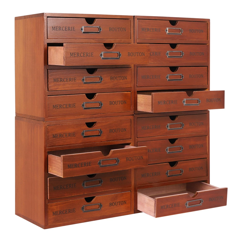 Specifications Style: Retro Color: Brown Material: Pine Wood, Iron Process: Spray Painting Shape: Rectangular Assembly Required: No Number of Drawers: 16 Number of Items: 4 Mount Type: Tabletop Each Drawer Max. Load-bearing Capacity: 1kg/2.2 lbs Total Max. Load-bearing Capacity: 16kg/35.27lbs Each Drawer Size: 21*15.5*3.81cm/8.25*6*1.5inch Each 4-tier Drawer Organizer Size: 24.5*17.5*24.5cm/9.6*7*9.6inch Overall Size of 4 Stacked Drawer Organizers: 49.8*17.5*49.8cm/19.6*6.89*19.6inch Package Size: 57*41*32cm/22.44*16.14*12.6inch Gross Weight: 10kg/22.05lbs Net Weight: 8.8kg/19.4lbs Package Included 4* Drawer Organizers 4Pcs Retro Drawer Organizers, Wooden Desktop Organizer, Wooden Storage Box Brown Description This drawer organizer set is a four-piece set, including 16 drawers. It is designed to make full use of space and achieves fine classification storage so that it will make your life and work more orderly. The retro style shows an antique charm, which can express a refined sense of fashion. This product has a small footprint and lots of storage space, making your life more organized and tidy, get it now. Key Features High-quality Material: The drawer organizer set is made of pine wood with a painting spraying process, which has good corr osion resistance, is sturdy and durable, and can be used for the long term. Vintage Appearance: The pleasing brown color, vintage metal label holder, rectangular structure, and smooth lines give it a retro style, adding beauty and vintage elements to your room. It plays a unique decorative role while using, bringing an old-world charm into your new-world home. Set of 4: Our package includes 4 pieces of organizers, including a total of 16 large-capacity drawers, which are enough to easily store jewelry, cosmetics, documents, and other small items, making your desktop cleaner . You can use these wooden storage boxes as a set or separately for different areas in your home. ' ' Excellent Load-bearing Capacity: Thanks to its thickened material and rectangular structure, each drawer can hold about 2.2 lbs of items, and this product can hold about 35.27 lbs in total, so you can use it with confidence. Space-saving: The size of a single drawer is 8.25*6*1.5inch , which occupies a small area and the multi-tier design uses vertical space rationally, so you get more space to store items without taking up too much desk spac e. Moreover, they are stackable for your convenience. Convenient to Use: Hollow-out handle on each drawer makes it easier to pull out and close the drawer, which not only provides convenience but also enhances the aesthetics of the entire product. Ready to Use: It does not need assembly, so you can directly use it after receiving and cleaning it, greatly saving time and effort. Easy to Clean: With a smooth surface and detachable drawers, it is very easy to clean with a damp cloth (not included). Ideal Gift: With a delicate outlook and practical storage function, it is a wonderful housewarming, wedding, or festival gift for your families, friends, or colleagues. Protective Package: Foam can effectively reduce the normal impact and ensure that it is fully delivered to you to the greatest extent. Details Iron Label Holders: They allow you to write the labels (not included) for each drawer to categorize, helping you quickly find desired items. Smooth Edges: Smooth and burr-free edges no t only increase the beauty of the product but also improve the safety of use. Application This product can be used in living rooms, bedrooms, study rooms, offices, dormitories, schools, and other places. It can be used to store cosmetics, files, books, letters, papers, magazines, tea bags, sugar packets, necklaces, earrings, bracelets, rings, perfumes, lipsticks, household medications, herbs, nutrition-related capsules, and other items. Specifications Style: Retro Color: Brown Material: Pine Wood, Iron Process: Spray Painting Shape: Rectangular Assembly Required: No Number of Drawers: 16 Number of Items: 4 Mount Type: Tabletop Each Drawer Max. Load-bearing Capacity: 1kg/ 2.2 lbs Total Max. Load-bearing Capacity: 16kg/35.27lbs Each Drawer Size: 21*15.5*3.81cm/8.25*6*1.5inch Each 4-tier Drawer Organizer Size: 24.5*17.5*24.5cm/9.6*7*9.6inch Overall Size of 4 Stacked Drawer Organizers: 49.8*17.5*49.8cm/ 19.6 *6.89* 19.6 inch Package Size: 57*41*32cm/ 22.44 * 16.14 * 12.6 inch Gross Weight: 10kg/ 22.05 lbs Net Weight: 8.8kg/ 19.4 lbs Package Included 4* Drawer Organizers Notes The material of the product is pine wood, so the surface may have some flaws, which is a normal phenomenon. Please check the quantity carefully after receiving the product. Please note that this product does not include other items shown in the picture. Please do not place it in a damp place or near an ignition source. Please allow the slight color difference caused by the shooting light and 1-3cm error due to manual measurement, and make sure you do not mind before you order. Payment Delivery details Terms of sales About us Contact us Payment We accept ebay payment 。 Fees such as import duties, taxes are not included in the item price or shipping costs. These charges are the buyer's responsibility. Delivery details Shipping: 2-9 working days to: USA Terms of sales We maintain high standards of excellence and strive for hundred percent customer satisfaction. Feedback is very important to us. We hope that you contact us immediately before you give neutral or negative feedback, so that we can address your concerns. It is impossible to address issues if we do not know about them! About us Your satis faction is our ultimate goal. We work hard to earn your trust and future business. Our certified technicians have tested each item before shipping. The unit comes with 1 year limited warranty on all manufacturing defects. a) If you receive a defective item, you may return it or ask for a discount. Please contact us within 14 days after you receive the package. b) What you returned must be intact and i