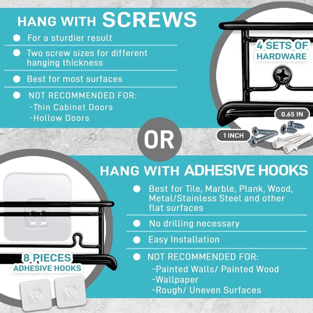 Descriptions: 【ELEGANT SPICE RACK】 Use this set of wall mounted spice rack organizer in your kitchen to keep spices organized and accessible or in the garage, bathroom, closet, craft room, under the sink or anywhere. 【DURABLE HANGING SPICE RACK】 Made of sturdy material, this spice rack organizer for wall withstands the test of time (unlike plastic ones) while making your kitchen sleek and organized. 【PERFECT SIZE SPICE HOLDER】 Redesigned with its new measurement of 11.4 x 2.36 x 2.36 inches, keep your spice jars more snug inside this spice wall rack and enjoy less rattling when opening the cabinet or pantry doors. 【MULTIFUNCTION SPICE SHELF】 This hanging spice storage is great for keeping not only spices, but also toiletries, makeup, crafting materials, medicine bottles, and other 4Pcs Spice Organizer Rack Wall Mount Spice Jars Set Rack Hanging Shelf Holder US D escriptions: 【 ELEGANT SPICE RACK】 Use this set of wall mounted spice rack organizer in your kitchen to keep spices organized and accessible or in the garage, bathroom, closet, craft room, under the sink or anywhere. 【 DURABLE HANGING SPICE RACK】 Made of sturdy material, this spice rack organizer for wall withstands the test of time (unlike plastic ones) while making your kitchen sleek and organized. 【 PERFECT SIZE SPICE HOLDER】 Redesigned with its new measurement of 11.4 x 2.36 x 2.36 inches, keep your spice jars more snug inside this spice wall rack and enjoy less rattling when opening the cabinet or pantry doors. 【 MULTIFUNCTION SPICE SHELF】 This hanging spice storage is great for keeping not only spices, but also toiletries, makeup, crafting materials, medicine bottles, and other items. This kitchen spice storage rack is a great way to organize your spices and save you the trouble of searching through cabinets and countertops for what you need. 【 EASILY INSTALLED CABINET DOOR SPICE RACK】 The kitchen stackable spice organizer is so simple to install that even one person can do it. (Spice jars not included) Specification : Name: Wall Mount Spice Rack Material: carbon steel Quantity: 4Pcs/set Size: 290 x 60 x 60 mm/11.4 x 2.36 x 2.36 inch Color: as shown Package List: 4 X Wall Mount Spice Rack 1 X Set of Accessories Note: Please allow 1-3cm (0.4-1.18") difference due to manual measurement and slight color variation for different display setting. Due to the light and screen difference, the item's color may be slightly different from the pictures. Please understand. Payment Shipping Return Contact us About us Payment 1.Paypal, Credit Card, G Pay etc, many payment way is accepted. 2.Please be sure your shipping address is correct before make a payment. Shipping 1.We are shipping from multiple warehouses (Houston, Texas/ Corona, California) , please note before placing an order 2.We will ship out the item within 1-3 business days after comfirming the payment, appreciate your patience. 3.If the items are broken on the way( we will check the orders clearly before we sent them ),please contact us in 3 days you received it. We will send you a new one or refund your payment. Return 1.We stand behind every buyer.Items can be returned for exchange or refund within 30 days. 2.Please contact us when you have any confusion of our item, we will solve the trouble for you as soon as possible. Contact us 1.This is professional Seller.We will reply your message within 24 hours. 2.Please contact us whenever you have any question about the item. We will deal with it as soon as possible. 3. If you are unhappy with the item or our service,please Contact Us before leave feedback,just give me a chance,thank you! About us 1. Unless specified otherwise, all our products are IN STOCK and are shipped from Local warehouse - Not Overseas! 2. We provide a 30 day Satisfaction Guarantee or your money back (provided items are in the same new and resaleable condition.) 3. We have a PayPal Verified Business Account, please buy with Confidence! 4. Every item will be tesrted before send.We know our products well and if we don't have the answers we will do our best to find them for you! 5. Our friendly team look forward to serving you! Your satisfaction is our No.1 Priority We will do our best to satisfacy you.