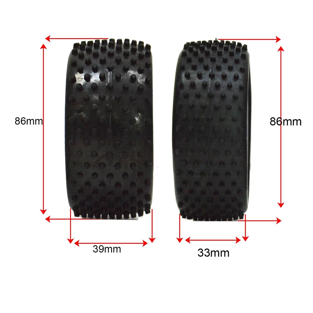 Feature: Special Pattern Strength the roadholding of The Car Easy to use and very durable Do not fit Traxxas Models,Check the size before buying. Compatible with: 1/10 TT02B Width 33mm/39mm (Front/Rear) The tire is not glued on rim. It's mounted on rim with foam inserted. Specification: Tyre Material:rubber Tire's outer diameter: 86mm Rim Material:Plastic Hexagonal joints: 12 mm Package include: 2x Front Tires 2x Rear Tires Note We will use PE or bubble bag to pack it well and protect it well. Don't worry. If the item damaged, please contact us firstly immediately before leave feedback, thanks for your understanding. Due to hand measure, there will be errors, subject to the actual product Due to Different Monitor, the color may have difference