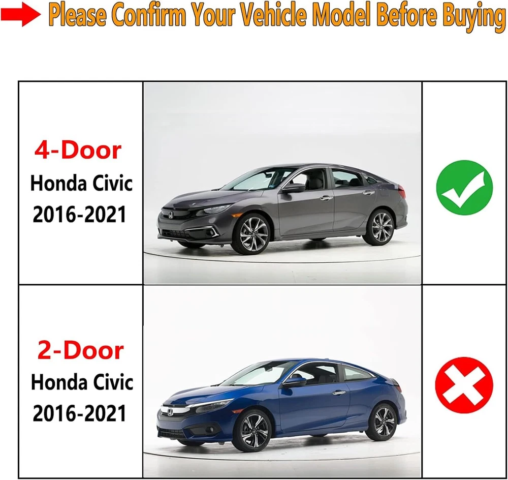 4Pcs Weatherstrip Window Moulding Trim Seal Belt Compatible with 2016-2021 Honda Civic 4 Door Sedan Item Description About this item 【Adaptation Model】Compatible with 2016-2021 Honda Civic Sedan 【Feature】Strong waterproof performance, good sound insulation effect, effectively solve the problem of water leakage, reduce wind noise and window shaking when driving at high speed, and improve driving comfort when driving. 【High Quality】Made of high-quality environmentally friendly materials, it is safe, odor-free, durable, and has good sealing performance. It has been tested many times before leaving the factory and meets or exceeds OEM standards. 【Easy Installation】Buckle design, easy to install, no need to drill or cut,Simply peel and align insertion to complete installation. 【Perfect Service】2 Year Warranty.Friendly return policy and customer service. If you have any questions, please contact us by email, we will reply you within 24 hours. › See more product details *Easy to install, no need to drill or cut, just need to align the buckle and insert it. *Good flexibility and resistance to compression deformation. *Please properly verify the Year/Make/Model before purchasing this product, in avoid of unnecessary charges. Payment We accept payment only through PAYPAL Shipping We ship products worldwide through standard express courier service, it will reach within 7 to 10 days to abroad buyers, we ship the product after recieved clear payment and give full information about shipment to the buyer Return We accept product return within 7 to 21 days from delivery date but product should be in original position and not in damaged condition,the return shipping charges will be buyer responsibility