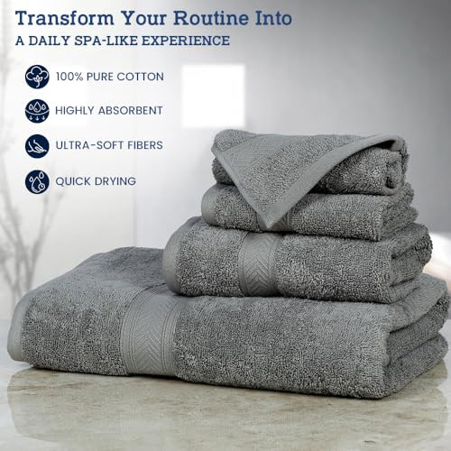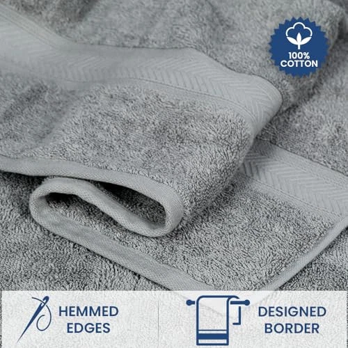 Absolutely love this towel set! The 100% cotton feels super soft and plush, and they absorb water quickly without shedding. Perfect size for bath, hand, and face towels—great value for a full bathroom upgrade. The silver color looks elegant, and they wash well without fading. Highly recommend for anyone wanting cozy, quality towels!