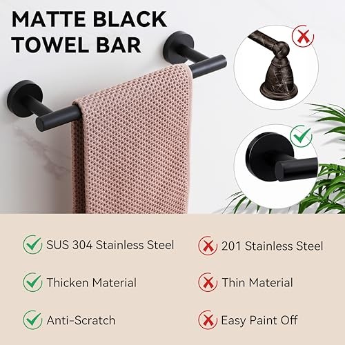 Return Policy Fast Delivery Trusted seller 4-Pieces Black Bathroom Accessories Set, Towel Bar for Bathroom Wall SUS 304 Stainless Steel Bathroom Hardware Set Black Towel Rack Product Description ▶️【High Quality Bathroom Hardware Set】The bathroom accessories set includes 9inch black towel bar x 1, 12inch black towel bar x 1, towel hooks x 2. You can get a abundant towel bar set to renovate your bathroom more beautifully. ▶️【Matte Black Finish】The bathroom towel holder set is treated with advanced matte black and made of premium SUS 304 stainless steel material, designed with clean lines and sturdy construction, preventing scratches and rust. ▶️【Easy Installation】The bathroom hardware set comes with all the mounting accessories and instruction manual. Plus, the screws are concealed that give it a more clean and attractive look. You can mount it to any flat surface you need. ▶️【Multifunctional Use】The black bathroom accessories set with space-saving design fits perfectly into bathroom, bedroom, kitchen cabinet, toilet and gym. Add more contemporary elements to your bathroom to a clean and warm atmosp. ▶️【Excellent After-sales Service】 Products offers an exclusive manufacturer warranty of 3 years. If you have any questions, please feel free to contact us and the team will solve your problem within 24 hours. Shipping Returns Payment Shipping Shipping is FREE to all addresses other than APO/PO boxes in the lower 48 states. All our stock ships from US-based warehouses. Shipped via USPS or UPS (depending on location and package weight) Unless stated otherwise, all orders will ship within 24-72 hours of your payment being processed. Check our feedback to see the great reviews of FAST shipping we offer. Returns Seller does not accept returns Payment We currently accept payment via eBay managed payments only. Once payment is cleared, we will dispatch your shipment within 1-3 business days. Please refer to the "Shipping" tab for more information regarding shipping speed to your destination.