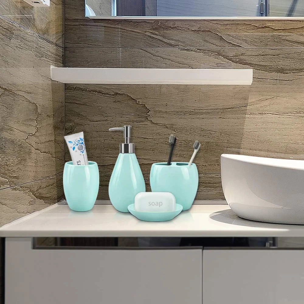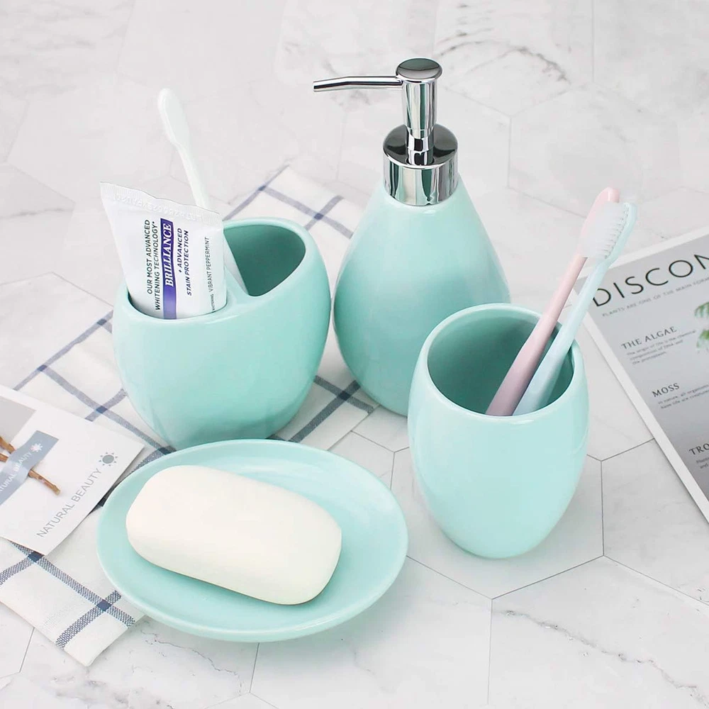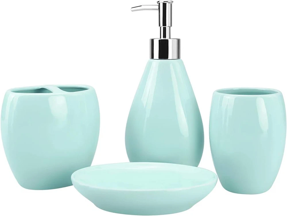 4-Piece Ceramic Bathroom Accessories Set, Moroccan Trellis Bathroom Ensemble Complete Sets for Bath Decor Includes Soap Dispenser Pump, Toothbrush Holder, Tumbler, Soap Dish, Ideas Home Gift (Silver)
