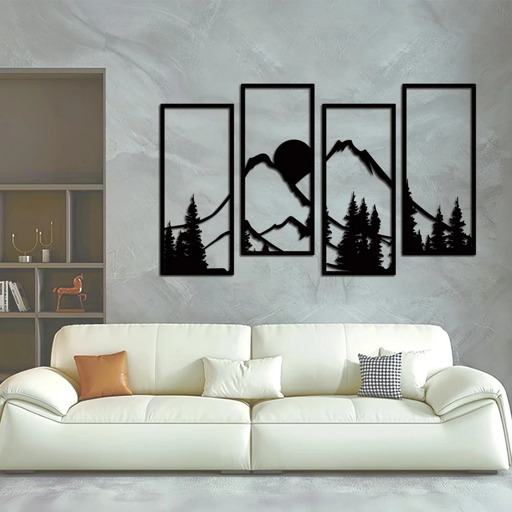 Menu Other Items Feedbacks About Us Contact Us Add To Favorites 4 Pcs Metal Sunset Mountain Forest Wall Decor, Abstract Minimalist Line Drawing Large Mountains Wall Art Home Decor for Living Room Bathroom Bedroom Office Indoor and Outdoor (Black, Large) UNIQUE DESIGN: You will receive 4 pieces of metal wall painting with line drawing of mountain in different styles, Vivid mountain wall art design, featuring simple mountain shape and classic black color, delicate and beautiful, easy to satisfy your various requirements for daily home decoration. SAFE AND HIGH QUALITY: The nature decor wall art is made of high quality metal precision cutting, strong sense of design, the surface of the plastic spray treatment, the use of reliable, not easy to break, deformation, fading or rust, can easily be used for a long time indoors and outdoors. SIZE: Black metal wall art single size is 22 x 9.5 inches / 56 x 24 cm, display size is about 47 x 26 inches / 120 x 66 cm. the right size to perfectly match your other wall decorations, eye-catching and beautiful, without taking up too much space. EASY TO INSTALL: The single piece wall decor is designed with 4 holes and some screws, it can hang firmly on the wall and not fall down easily, easy for you to install and remove, time and energy saving, adding more charm and beauty to your home and wall, but please note that the nails will damage the wall or door surface to some extent. WIDE APPLICATIONS: The metal mountain wall art could be widely applied on many occasions, such as bedroom, living room, bathroom, kitchen, porch, garden, office, classroom and other places, showing your nice taste and good personality. It is also a good choice for gift, As a housewarming gift, anniversary gift, birthday gift and holiday gift. Product Description Add to Cart Add to Cart Add to Cart Add to Cart Customer Reviews 4.9 out of 5 stars 13 4.9 out of 5 stars 13 4.8 out of 5 stars 6 4.8 out of 5 stars 30 4.8 out of 5 stars 30 Price $4.99 $ 4 . 99 — $16.99 $ 16 . 99 $40.99 $ 40 . 99 $18.99 $ 18 . 99 Style Cute Lovely Minimalist Moden Music Design Pomeranian Doberman Sexy Lady Flower Piano Material Metal Metal Metal Metal Metal Item Specification Color Sunset Mountain Forest Product Dimensions 47 x 26 x 0.2 inches Country of Origin China Item Weight 3.52 pounds Size 47x26 in / 120x66 cm Dimensions Shipping Returns Additional Info Product Dimensions: 26.0 inches x 47.0 inches x 0.2 inches. Weight: 3.52 lb Fast shipping is very important for us. Our standard shipping service is FREE. Your order will be shipped within 1-3 business days upon full payment received. Most items are delivered within 3-5 business days, however, please allow 3-10 business days. We are shipping only to USA. We only ship to the confirmed Paypal address. We reserve the right to cancel any order for any reason at any time. We are not responsible for undeliverable addresses. We offer a 30 day return policy from checkout winning date. Your satisfaction is guaranteed! If for any reason you are unhappy with your item, just return it within 30 days for a full refund, minus shipping cost. Please contact us prior to initiating a return so that we can issue you a refund authorization. Items defective upon receipt must be packaged in their retail packaging as if new and returned with a detailed description of the problem. Return shipping fees are not refundable. We reserve the right to decline any returns if the above guidelines are not followed. All of our items, unless otherwise stated, will only run on 120 volts. Please check to make sure your country complies with these specifications. If you have a problem or question regarding your transaction please contact us before leaving any type of feedback. We will work with you to resolve any problem you may have.