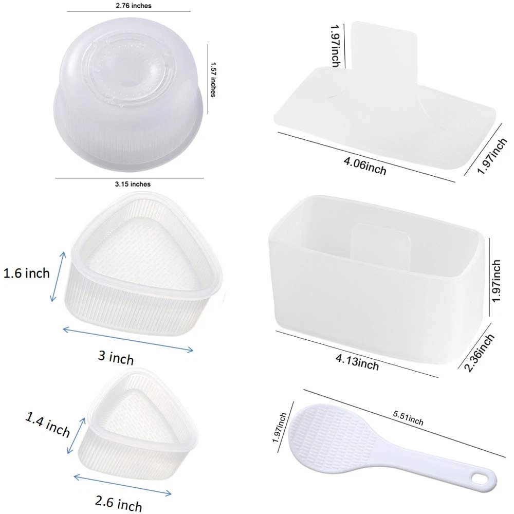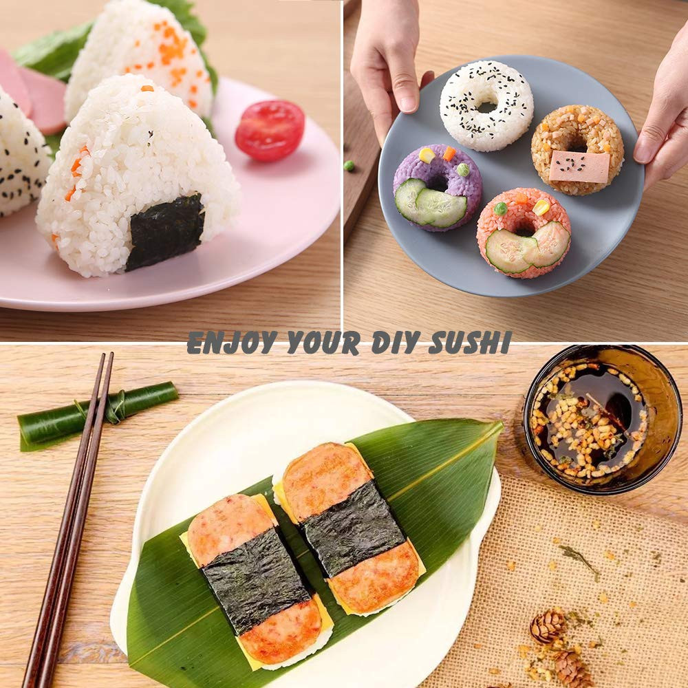 🍣【4 Pack Sushi Shaper Mold】Invite the professional sushi maker kit into your kitchen, the molds are made of 100% food grade material, safety. You'll get 1 pc standard size musubi maker with a little rice paddle, 2 pcs different size triangle sushi press molds and 1 pc donut shaped rice mold. Enjoy the different shape Japanese sushi. 🍣【Nonstick Surface】Bumpy surface design, including the lining and the press bottom, ensures the rice doesn't stick to the mold, easy to be demoulded. And the curved corner makes the sushi rice a better shape presentation. 🍣【Simple Is Better】Eliminate the sushi rolling mat set, say "Goodbye" to the traditional complex making process. You just need to place the rice, ham sausage or other foods into the sushi maker, press down the rice, and make it tightly packed, you'll get the kinds of delicious sushi and musubi. Simple and save money. 🍣【Easy to Clean】It's easy to clean due to the non-stick surface, you can wash it by hand with dishcloth or brush, not suitable for dishwasher. Small size, easy to store, bring your life more convenience. 🍣【Quality Guarantee】Your satisfaction is our main priority and we strive to offer the high quality product.