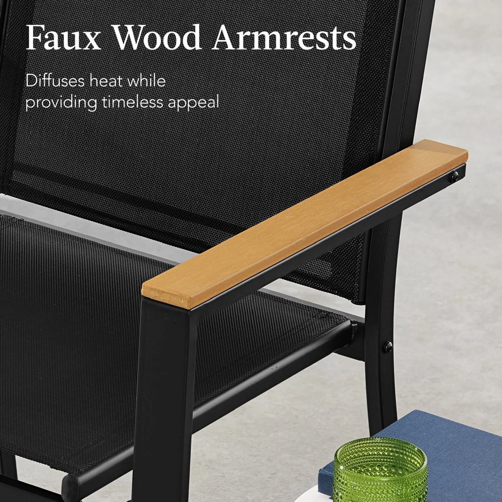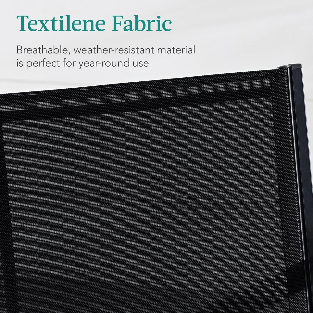 Elevate your outdoor lounging experience with our 4-piece Textilene conversation set. Designed for versatility, the set includes a modern table, loveseat, and two single chairs that can be effortlessly arranged to suit your space. Crafted with lightweight yet durable textilene fabric, the seats offer a cool and breathable surface that's resistant to weather, UV rays, and tears, ensuring long-lasting comfort. Faux wood accents on the steel armrests not only enhance the contemporary aesthetic but also provide a comfortable resting place while diffusing heat for added safety under the sun. With stylish steel frames wrapped in tightly woven textilene, this set combines modern appeal with reliable support. The removable tempered glass tabletop adds a sleek finishing touch, offering a smooth and easy-to-clean surface for all your outdoor dining and decor needs. VERSATILE SETUP: This set features a modern aesthetic, complete with a table, loveseat, and two single chairs that can be mixed & matched to your sitting space TEXTILENE FABRIC SEATS: These seats use light yet durable textilene to create a cool, breathable surface that is weather-, UV-, and tear-resistant for lasting quality FAUX WOOD ARMRESTS: Accent panels on the steel armrests help elevate the arms for a more relaxed posture and diffuse heat to prevent burns during full-sun conditions CONTEMPORARY DESIGN: Stylish steel frames are wrapped with tightly woven textilene to capture a modern appeal while providing reliable support GLASS TABLE TOP: The removable, tempered, and tinted glass tabletop is a smooth, easy-to-clean surface for food, drinks, and outdoor decor; LOVESEAT DIMENSIONS: 43"(L) x 25"(W) x 33"(H); LOVESEAT WEIGHT CAPACITY: 660 lbs.; CHAIR DIMENSIONS: 25"(L) x 24.5"(W) x 33"(H); CHAIR WEIGHT CAPACITY: 330 lbs.; TABLE DIMENSIONS: 35.5"(L) x 19.5"(W) x 16.5"(H); TABLE WEIGHT CAPACITY: 66 lbs.