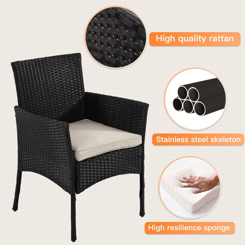 EASY ASSEMBLY: This Outdoor Furniture Set Comes with All Hardware & Necessary Tools. Follow The Instruction, You Can Easily and Quickly Assemble the Patio Sofa Set. NOTE: When you try to install the Patio Furniture Set, try to line the hole together in all side, do not over tight one hole, then try to tight it slowly in each side. SIMPLE AND ELEGANT: The cushions of the patio furniture set use a high-density rebound sponge to give you a comfortable sitting feel. Patio Wicker Sofa Set Built as High-Quality Metal Frame with Resilient PE Rattan, Black Synthetic Resin Wicker Outdoor Garden Conversation Set Designed for the Outdoors, Weather Resistant Design and UV Resistant. HUMANIZED DESIGN: Thickly Cushioned Wicker Patio Sofa Set Chairs for Maximum Comfort, Patio Outdoor Sofa Gives You an Excellent Seating Experience. Our Garden Outdoor Conversation Set have strong feet to protect your floor and increase the stability of your furniture. STRONG AND STURDY: This patio furniture set is made with a powder-coated steel frame and all-weather PE rattan wicker for a comfortable experience. The wicker of the Outdoor furniture set is sturdy but also very light. The seat cushion of this patio Conversation Set can be removed for easy cleaning. CONVENIENT CLEANING: The table in the patio furniture set is made of high-quality transparent tempered glass for drinks, food and any beautiful decorations. Our Outdoor Patio Wicker Sofa Sets all kinds of outdoors. Specifications: Material: PE Rattan & Steel Frame Rattan Color: Black Cushion: Blue polyester fabric and sponge padded Sofa Size:41.5"(W) X 23" (D) X 32.9"(H) Chair Size:23.2"(W)X 23"(D) X 32.9"(H) Table Size:28 "(L)X 16.5" (W) X 15.5 " (H) The comfortable double sofa is enough for two people to sit down. It's perfect for your patio Heavy-duty Foot Table and chairs are come with sturdy feet to protect your floor and add stability to the furniture. Our seat cushion is made of high-quality sponge material, which is breathable and not stuffy, comfortable to sit, and brings you a special enjoyment. The bottom of the seat is reinforced with a cross-shaped design, which makes the furniture more stable and can provide greater load-bearing. If you accidently spill on your cushions or if dirt accumulates over time, you can simply zip off the cushion covers and give them a quick wash to have them looking brand new. Top quality, all-weather resistant synthetic resin is built to last while having a sleek. Our wicker is strong and durable but also lightweight at the same time. High density thickened sponge cushion provides comfortable seating experience. Product Description PRODUCT DETAILS: This Is Our New 4-Piece Patio Furniture Sets with Thick Cushions, Contemporary Looks, Elegant Design for Comfortable And Durability. Please Note: Our digital images are as accurate as possible, however, photo taking condition and different monitors may cause image color to vary slightly, and it is normal. Don't hesitate to buy it !!! FEATURES: - Modern and stylish outdoor sofa set, perfect for any indoor or outdoor decoration. - Composed of lightweight rattan wicker and a sturdy metal frame, This Patio sofa set is weatherproof, UV-resistant and stable. - Our High-Quality Patio Furniture Sofa Set Metal Frame with Removable Covers Cushions (Beige), You Will Feel Very Comfortable & Relaxed When Leaning On. Package Include: 1 x Tempered Glass Top Coffee Table; 2 x Single Chair; 3 x Thick Cushion; 1 double sofa. Listed by Frooition Frooition | No-js Template | eBay design, eBay store design, eBay shop design, eBay template design, eBay listing design, eBay Listing Tool (ver:froo_no_js)