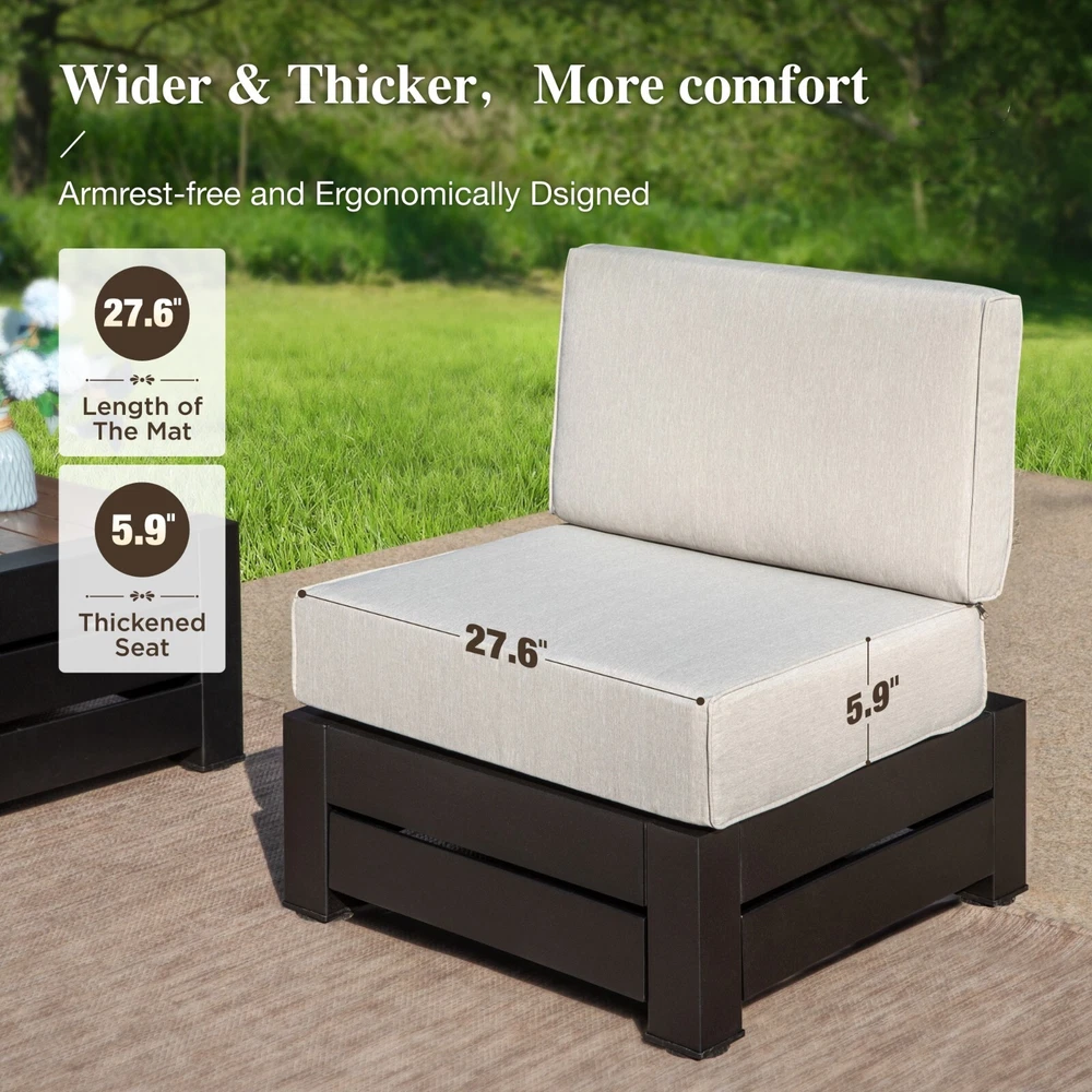 Description: Transform your outdoor space with our sleek Patio Furniture Set! Designed with a modern modular design, this set lets you arrange your furniture in any way you like, making it perfect for gatherings or quiet evenings. The high-quality electrophoretic coating ensures durability and protection against the elements, so you can enjoy your patio all year round. Sit comfortably with family and friends while enjoying the fresh air. Elevate your patio experience and create your personal oasis today! : Feature Transform your living space with our stylish Conversation Sofa Set! Crafted with a high-quality steel frame, this sofa set is built to last while adding a touch of elegance to your home. The beautiful wood grain finish provides a warm, inviting atmosphere, perfect for hosting friends and family. Whether you’re enjoying a cozy night in or entertaining guests, this sofa set is designed for comfort and durability. Upgrade your seating experience today with our Conversation Sofa Set and create lasting memories in style! Our products come with 1-year-warranty, ensuring that there will be no defects in materials and workmanship under normal use. We do our best to hear from customers and update our products. If you have more problems, please be free to contact us.