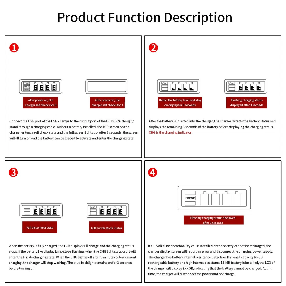 USB Plug Fast Battery Charger for AA AAA Rechargeable Batteries 4 Slots Visible Anytime: With the LCD display screen, you can master the charging progress and power of each battery at a glance. The charger also has a real-time detection function to protect your batteries from overcharging or short-circuiting. Independent Card Slots: Whether you need to charge AA or AAA batteries, this charger can handle both. You can even mix and match different types and capacities of batteries in the same charging cycle. With independent card slots, you can also charge each battery separately for flexible use. Battery Protection: This charger features intelligent three-stage charging technology that automatically switches from constant current to constant voltage to trickle mode, preventing overcharging and extending the service life of your batteries. Multiple Power Supply Methods: Whether you need to charge your batteries from a charging treasure, a car, a notebook, or a wall outlet, this rechargeable battery charger can handle various power supply methods. It also has a USB charging port for your convenience and versatility. High-Strength Shell: Made of a high-strength shell with fire protection and heat dissipation features, this charger is safe and reliable even under high-temperature conditions. It can charge your batteries fast and efficiently without overheating or short-circuiting. Features: 1. LCD smart charger AA/AAA rechargeable battery. 2. The liquid crystal display shows the battery charge and detects the battery in real-time, which can be seen at any time. 3. Independent card slot charging supports single charging, double charging, and mixed charging. 4. Constant voltage and constant current trickle charging intelligent three-stage charging, prolonging the battery life. 5. The power supply of the USB interface is convenient and fast, and it can be charged anytime and anywhere. 6. High-strength shell with fast heat dissipation and high-quality shell material, fireproof and high temperature resistant. Specification: Name: Battery Charger Product model: BH-USB C04 Input voltage: DC 5V 2A Output voltage: DC 1.2V 500mA*4 Compatible batteries: AA, AAA Charging time limit: 7 hours Product certification: EMC CE FCC Product size: about 94*64*27mm/3.70*2.52*1.06in Product features: LCD display, independent card slot charging, USB conventional power supply Product function: The charger has a built-in intelligent charging protection circuit, equipped with an LCD screen to display the charging status, intelligent three-stage charging mode, and constant voltage/constant current/trickle charging, making the battery charge more saturated. When the battery is fully charged, it can automatically stop charging, which will not cause the battery to be overcharged and prolong the service life of the battery. Packing List: Battery Charger*1 Notes: 1. Due to the different monitor and light effects, the actual color of the item might be slightly different from the color which is shown in the pictures. 2. Please forgive a slight measuring deviation due to manual measurement. 1.You can make a Credit payment via Paypal.Paypal will let you use MasterCard,Visa to pay. 2.Payment should be completed within 5 days after auction closed, or unpaid dispute will be filed for an closing auction.An unpaid case will be filled after 4 days. ● We strive for 100% customer satisfaction ! ● Positive Feedback is very important to us. ● We hope that you contact us immediately BEFORE you give us neutral or negative feedback, so that we can satisfactorily address your concerns. ● We promise to offer the lowest price and high quality produce. Dear buyers : ● Welcome to my store ! ● Your satisfaction is our top goal,we appreciate your patronizing. ● If you have any questions, please contact us before leave negative or neutral feedback, we will try our best to solve the issue to your satisfaction, thanks ! ● If you are satisfied with our service, please rate the details of the transaction (Detailed Seller Ratings) on eBay. ● Please always talk to us via ebay Message. ● We appreciate your business and look forward to growing our e-Bay sales with satisfied customers.