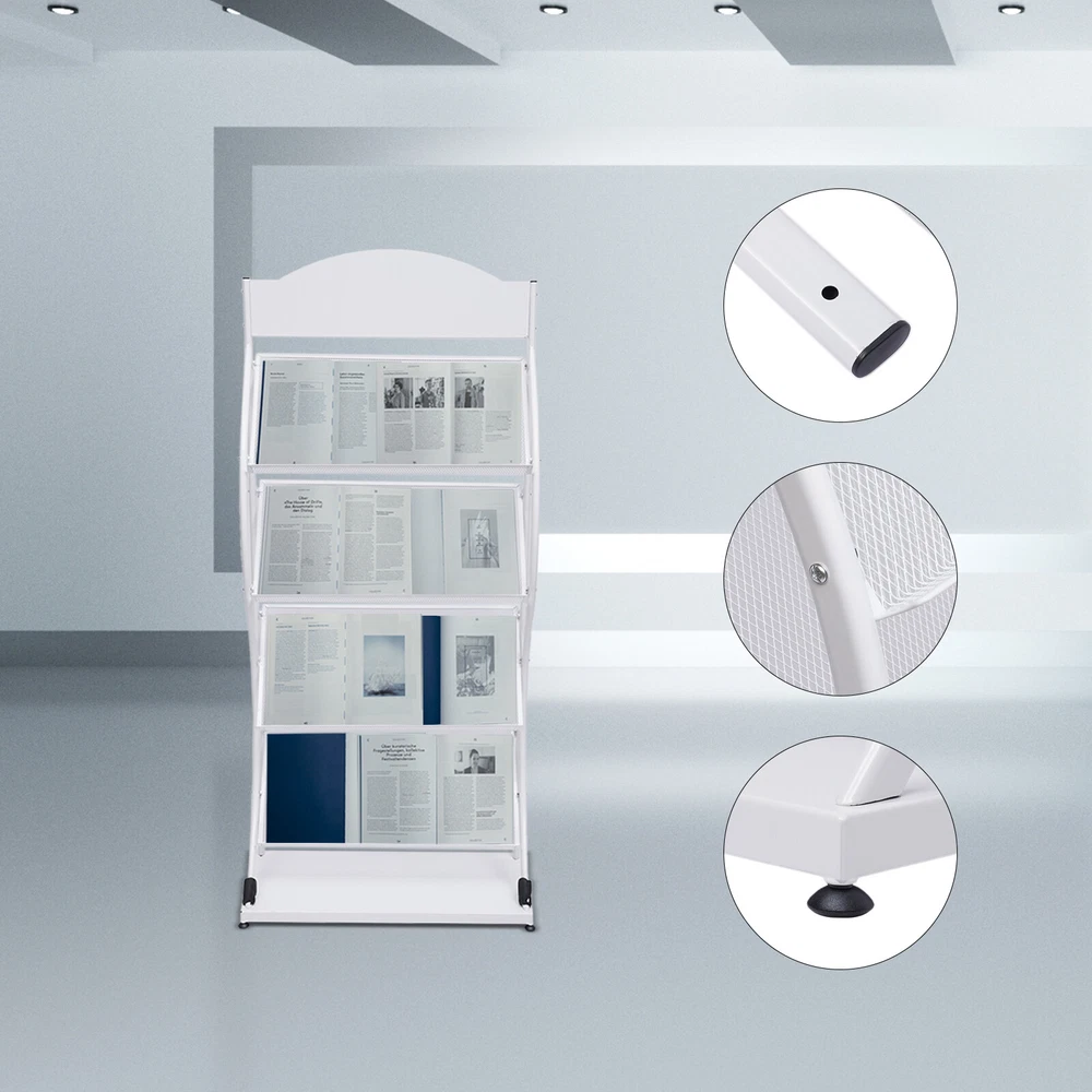4-Tier Floor-standing Magazine Shelf Newspaper Storage Rack Display Holder Description Are You Still Leaving Impurities and Journals Cluttered on Your Desk? Do You Look Forward to a Sleek, Solid, Large-capacity Floor-standing Magazine Rack to Help You Organize Your Magazines and Periodicals? Then Please Do Not Miss This Fashionable and Practical Floor-standing Magazine Rack. with This Floor-standing Magazine Rack, Your Office, Study, Living Room, and Bookstore Will Be Tidier! Key Features Sturdy and Durable : the Floor-standing Magazine Rack Is Made of High-quality Iron After Superb Welding, Which Is Very Sturdy and Durable. Large Capacity : the Four-layer Structure of the Floor-standing Magazine Rack Provides You with Enough Storage Space. Each Shelf Can Hold 2 A4 Manuals Side by Side at the Same Time. the Longer and Wider Shelves Can Hold up to 16 A4 Impurities per Tier. Excellent Weight-bearing Capacity : the Floor-standing Magazine Rack Thickened Iron Tube Provides a Maximum Weight-bearing Capacity of 33.06 Pounds per Tier. the Excellent Load-bearing Capacity Allows You to Use It with Peace of Mind. Convenient Access : the Floor Magazine Rack's Open Design and Proper Spacing Allow You to Get the Magazines You Want to Read at Your Fingertips. Display Function : the Floor-standing Magazine Rack's Tilted Shelves Allow Customers to Clearly See the Magazine Covers, Promoting Their Desire to Buy. Stylish Appearance : the Floor-standing Magazine Rack's Smooth S-shaped Lines and Elegant White Color Create a Stylish yet Classic Style. Such an Attractive Floor-standing Magazine Rack Is a Great Decoration for Any Place. Superb Craftsmanship : the Surface of the Floor-standing Magazine Rack Adopts Superb Sandblasting and Plastic Spraying Processes. the Sandblasting Brings a Smooth and Delicate Surface to It. Plastic Blasting Makes the Floor-standing Magazine Rack Wear-resistant and Corrosion-resistant . Strong Stability : the Unique S-shaped Iron Tube and Thickened Support bar of the Floor-standing Magazine Rack Provides Excellent Stability, Making It Solid and Non-shaky . Details Grid Design : Floor-standing Magazine Rack Shelves with Breathable Grid Design to Place Books, and Magazines Mold. and the Grid Design Can Increase the Friction with the Book so That It Is Not Easy to Fall. Nylon Anti-slip Feet : the Bottom Anti-slip Feet Are Made of Nylon, Which Can Prevent Slipping. and Nylon Cage Anti-slip Feet Can Protect the Floor from Scratches. Base : the Thickened Base Increases Both the Stability of the Floor-standing Magazine Rack and Its Placement Area. Advertising Board : the Top Billboard Can Be Diy According to Demand, Which Not Only Exercises the Hands-on Ability but Also Increases the Decorative Nature of the Floor-standing Magazine Rack. Galvanized Iron Screws : the Screws Are Made of Galvanized Iron and Are Made to Take into Account Laminations. Electroplated Screws Are More Durable and Can Extend the Life of the Floor-standing Magazine Rack. Application The Floor-standing Magazine Rack Is Suitable for Displaying and Storing Books, Impurities, Newspapers, Periodicals, Etc. Its Beautiful Shape and Large Capacity Make It Suitable for Homes, Bookstores, Libraries, Schools, Etc. Specification Model: 209 Material: Iron, Galvanized Iron Color: White Style: Minimalist, Industrial Mounting Type: Floor-standing Number of Layers: 4 Surface Treatment: Sandblasting, Spraying Process Single Shelf Capacity: 15kg/33.06lbs Gross Weight: 5kg/11.02lbs Package Size: 142*34*7cm/55.90*13.38*2.75in Product Size: 65*30*146cm/25.59*11.81*57.48in Advertising Board Size: 60.5*18cm/23.81*7.08in Single Board Size: 60.5*31cm/23.81*12.20in Installation Unscrew the Screws at Both Ends of the Round Tube. Fix the Round Tube Between the Left and Right Supports. Fix the Billboard Between the Left and Right Supports. Fix the Grid Layer in Turn Between the Left and Right Brackets to Complete the Installation. Package Included 1*Base Plates 2*Stands 4*Mesh Plates 1*Advertising Board All Accessories Required for Installation Notes Please Allow the Slight Color Difference Caused by the Shooting Light and 1-3cm Error Due to Manual Measurement. Please Make Sure You Do Not Mind Before You Order. Payment Delivery details Terms of sales About us Contact us Payment We accept ebay payment 。 Fees such as import duties, taxes are not included in the item price or shipping costs. These charges are the buyer's responsibility. Delivery details Shipping: 2-9 working days to: USA Terms of sales We maintain high standards of excellence and strive for hundred percent customer satisfaction. Feedback is very important to us. We hope that you contact us immediately before you give neutral or negative feedback, so that we can address your concerns. It is impossible to address issues if we do not know about them! About us Your satis faction is our ultimate goal. We work hard to earn your trust and future business. Our certified technicians have tested each item before shipping. The unit comes with 1 year limited warranty on all manufacturing defects. a) If you receive a defective item, you may return it or ask for a discount. Please contact us within 14 days after you receive the package. b) What you returned must be intact and in its original packaging as re? u. Customer is responsible for shipping costs of the returned item. c) We will cover the cost of shipping back t with the shipping rate indicated in the registration page. We will send you a new unit or refund the full payment you paid. Thank you. Contact us Business Hour Business Hour: Monday To Friday: 8:30 AM to 5:00 PM (Beijing China time) Due to time zones, our reply to your questions may not be immediately. But within above working time, we will reply your email within 24 hours. If it's non-workdays, please kindly be patient and wait till Monday. Please contact us with ebay message. Please feel free to contact us if you have any questions. Monday To Friday: 8:30 AM to 5:00 PM (Bei