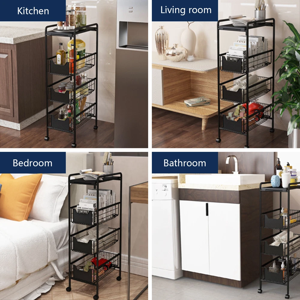 Colour: Black Multifunctional storage rack Suitable for storage areas such as closets, wardrobes, cabinets, garages, entrances, halls, etc. ● Put this slim cart in the kitchen to store vegetables, sneakers, spice jars and other small kitchen utensils. ● Store beauty products in your dressing room, according to your needs and cosmetics within reach. Put detergent and needles in the laundry room. Used as a folding clothes, towel or toiletry rack in the bathroom. Put plants on the balcony. ● Assemble the bookshelf in the study room, and store the books you want to read anywhere. 4-Tier Metal Kitchen Slim Utility Cart Trolley Storage Shelf + Slide-Out Drawers Description This Multifunctional Storage Rack is Suitable for storage areas such as closets, wardrobes, cabinets, garages, entrances, halls, etc. Put this slim cart in the kitchen to store vegetables, sneakers, spice jars and other small kitchen utensils. Store beauty products in your dressing room, according to your needs and cosmetics within reach Put detergent and needles in the laundry room Used as a folding clothes, towel or toiletry rack in the bathroom. Put plants on the balcony. Assemble the bookshelf in the study room, and store the books you want to read anywhere. Weights & Dimensions Weight:4.78 kg Dimensions: 14.1" L x 9.4" W x33.4 " Specification Colour: Black Dimension : 14.1" L x 9.4" W x33.4 " H Material: Carbon Steel Maximum Load: 110 lbs weight in total, 22 lbs each layer . Application : Kitchen, Bathroom, Laundry Room, Bedroom, Office...... 【High Quality Materials】: The narrow storage cart made of carbon steel, it is durable and stable.which is environmentally friendly, durable and sturdy.With carbon steel pole strong support, the cart could load 110 lbs weight in total, 22 lbs each layer. 【Movable Shelving Unit & Side Hooks】: 4 easy-glide durable wheels with 360° rotation. 2 wheels with brakes make the slim kitchen rolling cart more stable don't worry about slipping.the organizer cart can easily slide out of any narrow . 【Slim But Generous Storage】: This partical small utility cart can be great extra storage for small spaces. It is really a space saver. You can storage different items in each layer, make your room organized, clean and tidy. 【Multi-Purpose】: The Slim Cart can be placed in the Kitchen, Bathroom, Laundry Room, Bedroom, Office, you can store your detergent, cleaning products, bathroom accessories, kitchen accessories and lots more. 【Easy to Assemble】 : Dimension:14.1" L x 9.4" W x33.4 " H once assembled. No tools required,you can totally assemble this laundry room cart by yourself within ten minutes. More Details What's Included 1×Storage Shelf Payment Delivery details Terms of sales About us Contact us Payment We accept ebay payment 。 Fees such as import duties, taxes are not included in the item price or shipping costs. These charges are the buyer's responsibility. Delivery details Shipping: 2-9 working days to: USA Terms of sales We maintain high standards of excellence and strive for hundred percent customer satisfaction. Feedback is very important to us. We hope that you contact us immediately before you give neutral or negative feedback, so that we can address your concerns. It is impossible to address issues if we do not know about them! About us Your satis faction is our ultimate goal. We work hard to earn your trust and future business. Our certified technicians have tested each item before shipping. The unit comes with 1 year limited warranty on all manufacturing defects. a) If you receive a defective item, you may return it or ask for a discount. Please contact us within 14 days after you receive the package. b) What you returned must be intact and in its original packaging as re? u. Customer is responsible for shipping costs of the returned item. c) We will cover the cost of shipping back t with the shipping rate indicated in the registration page. We will send you a new unit or refund the full payment you paid. Thank you. Contact us Business Hour Business Hour: Monday To Friday: 8:30 AM to 5:00 PM (Beijing China time) Due to time zones, our reply to your questions may not be immediately. But within above working time, we will reply your email within 24 hours. If it's non-workdays, please kindly be patient and wait till Monday. Please contact us with ebay message. Please feel free to contact us if you have any questions. Monday To Friday: 8:30 AM to 5:00 PM (Beijing China time) Due to time zones, our reply to your questions may not be immediately. But within above working time, we will reply your email within 24 hours. If it's non-workdays, please kindly be patient and wait till Monday. Please contact us with ebay message. Please feel free to contact us if you have any questions. Characteristic Convenient Use,Easy Operation,Easy installation Brand Unbranded MPN Does Not Apply Color Black Size 14.1"L x 9.4"W x33.4 "H Type Shelf Rack Number of Tiers 4 Material Metal Rack Type Corner Design Number of Compartments 4 Number of Shelves 1 Item Width 9.4 in Item Height 33.4 in Item Length 14.1 in Department Teens Custom Bundle No Bundle Description N/A Features Multipurpose