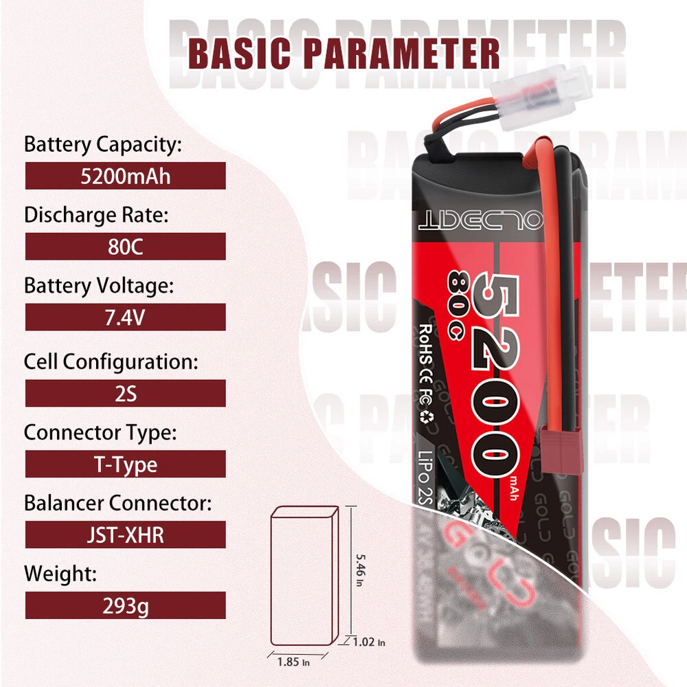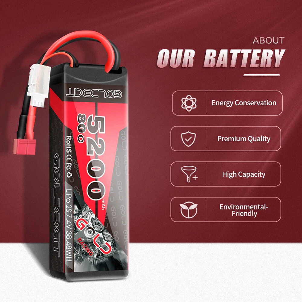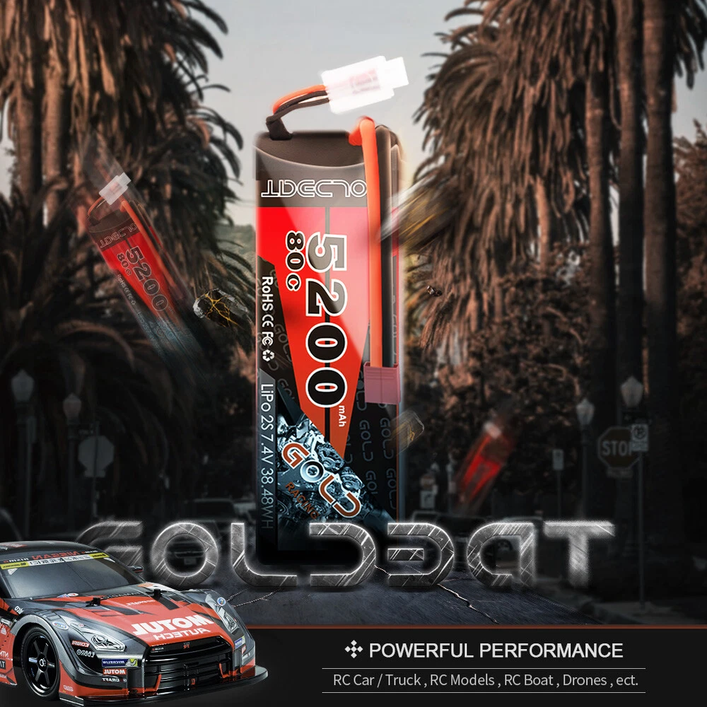 Product Description 4X 5200mAh 80C 7.4V 2S LiPo Battery Hardcase Deans for RC Car Truck Truggy Boat Production: We are a leading company in Shenzhen China and specialized in this filed. All of our batteries comply with RoHS and CE quality test standards. GOLDBAT Batteries offer an excellent value by providing factory direct price and grade A cells quality. Product Details: ★Brand: GOLDBAT ★Capacity(mAh): 5200mAh ★Voltage(V): 7.4V ★Discharge Rate (C): 80C ★Configuration: 2S1P ★Net Weight(dev.20g): 293g ★ Length* Width* Height (dev.5mm): 138*47*25mm ★Connector Type: Deans plug ★Wire Gauge: AWG12# ★Balancer Connector Type: JST-XHR Application: GOLDBAT 5200mAh 7.4V 2S 80C Lipo Battery specially designed for professional 1/10 scale and 1/8 scale RC car hobby models such as: Traxxas Slash, Emaxx, Bandit, Rustler version, Losi, Team Associated, etc. - It also could be used for RC airplane, RC helicopter, RC boat, drone, FPV. - For RC battery, only if the voltage, dimension and plug match, then it will fit. NOTICE 1. To ensure safety, please check and confirm lipo battery surface and voltage is normal before using. 2. If the new lipo battery won’t hold a full charge or loss the charge very quickly in short time, please use Professional lipo battery Charger to charge and recycle several times first. For most lipo battery, the safest charge rate is 1C. 3. NEVER Over-charge or Over-discharge lipo battery. Never charge above 4.2V per cell and discharge below 3.0V per cell. (Normal cell voltage is between 3.7V~4.2V) 4. Never charge lithium polymer battery unattended. 5. If lipo battery has any problem, feel free to contact us via eBay message in the first time, we will offer you a proper solution. What in the box: 4 x 5200mAh RC battery 4x user manual 4 x Velcro strap as a gift Payment Shipping Returns Feedback About Us 1.We accept PayPal only. 2 . NOTE : Payment should be sent within 4 (FOUR) days of auction closing. Or unpaid dispute will be filed for closing auction. 1. We ship to your eBay,please make sure your eBay address is correct before you pay. (We don't ship to PO box address) 2. Items will be shipped within 1 business day when we received payment. 3. Delivery time depends on destination and other factors. 4. You will get the item whitin 3-7 business day after it is be shipped. 5. If you have any problem , pls contact us firstly, we will try our best to solve it. 1.Our items come with 60-Day warranty. 2.Our warranty does not extended to any products that are physically damaged or that are not under normal operating conditions as a result of misuse or improper installation on the buyer/user's part. 3.This product comes with 30-Day Money Back Guarantee. 4.We stand behind every product we sell. If you're not pleased with your purchase, we'll be happy to make an exchange or refund. 1. We value your feedbacks, please leave your feedback and comment. 2. We will automatically leave positive feedback to every buyer who completed the transaction and left positive feedback to us. 3. Your better comments will be an encouragement for us to offer the better quality and the better service in future. 4.If you have any problem , pls contact us , we will try our best to help you to solve it. GOLDBAT is one of the best lithium batteries brand who focus on providing speed and power for RC cars, drones, UAV, FPV and other RC products. We are manufacturer on our own. Having a professional and leading batteries factory development, production and sales of lipo batteries in Shenzhen China. With safe and steady formula of Japan and Korea lithium polymer raw material, superb pairing technology, smooth and steady discharge curve and rigorous scientific quality control system, GOLDBAT batteries offer the excellent value by supplying factory direct price and grade A quality for you and your RC products. Payment 1.We accept PayPal only. 2 . NOTE : Payment should be sent within 4 (FOUR) days of auction closing. Or unpaid dispute will be filed for closing auction. Shipping 1. We ship to your eBay,please make sure your eBay address is correct before you pay. (We don't ship to PO box address) 2. Items will be shipped within 1 business day when we received payment. 3. Delivery time depends on destination and other factors. 4. You will get the item whitin 3-7 business day after it is be shipped. 5. If you have any problem , pls contact us firstly, we will try our best to solve it. Returns 1.Our items come with 60-Day warranty. 2.Our warranty does not extended to any products that are physically damaged or that are not under normal operating conditions as a result of misuse or improper installation on the buyer/user's part. 3.This product comes with 30-Day Money Back Guarantee. 4.We stand behind every product we sell. If you're not pleased with your purchase, we'll be happy to make an exchange or refund. Feedback 1. We value your feedbacks, please leave your feedback and comment. 2. We will automatically leave positive feedback to every buyer who completed the transaction and left positive feedback to us. 3. Your better comments will be an encouragement for us to offer the better quality and the better service in future. 4.If you have any problem , pls contact us , we will try our best to help you to solve it. About Us GOLDBAT is one of the best lithium batteries brand who focus on providing speed and power for RC cars, drones, UAV, FPV and other RC products. We are manufacturer on our own. Having a professional and leading batteries factory development, production and sales of lipo batteries in Shenzhen China. With safe and steady formula of Japan and Korea lithium polymer raw material, superb pairing technology, smooth and steady discharge curve and rigorous scientific quality control system, GOLDBAT batteries offer the excellent value by supplying factory direct price and grade A quality for you and your RC products. powered by