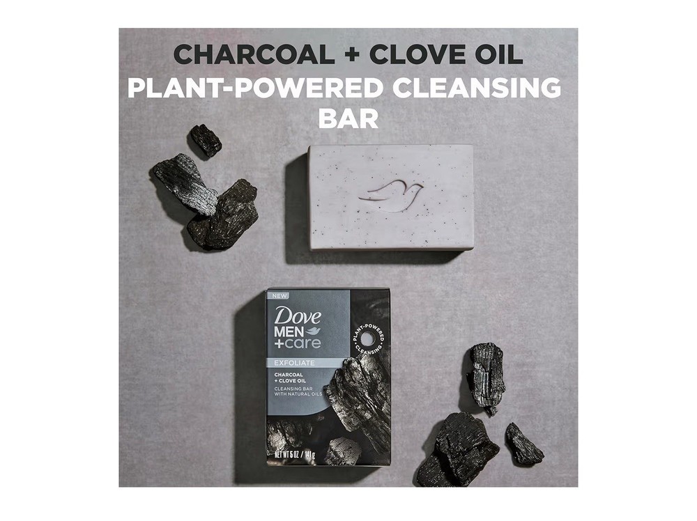4X Dove Men Care Exfoliate Cleansing Bar - 5 oz (141 g) - Charcoal and Clove Oil.