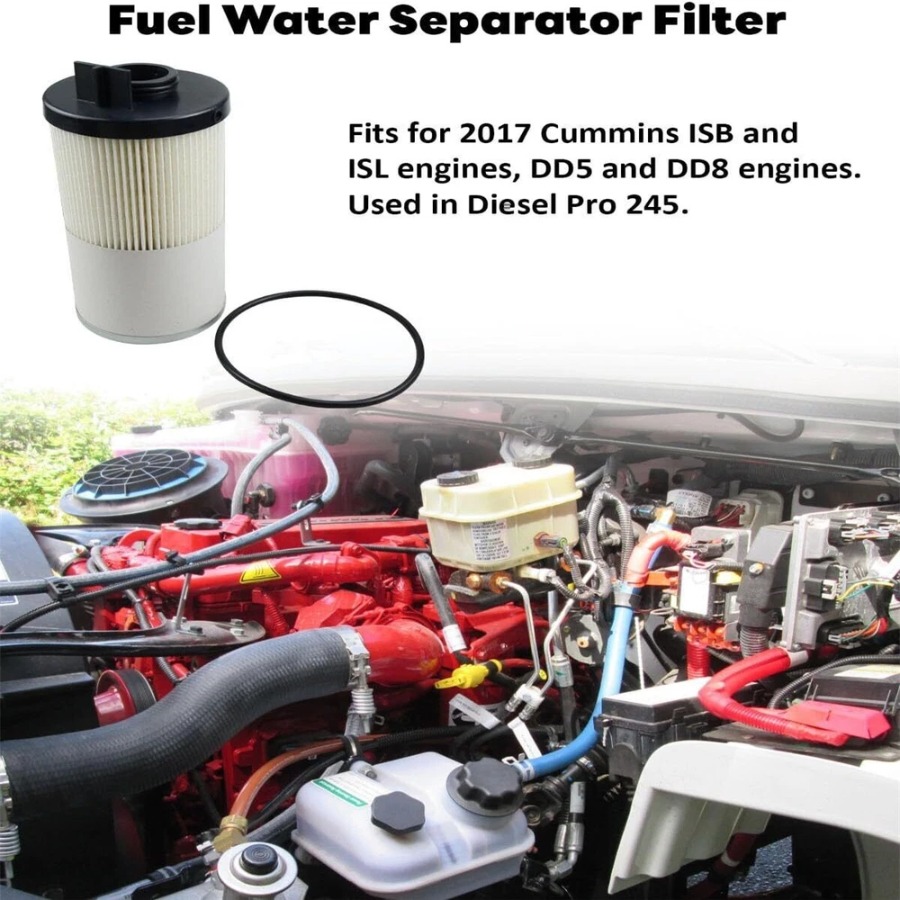 [Function] The role of the fuel filter is to remove iron oxide, dust and other solid debris contained in the fuel to prevent clogging of the fuel system (especially the injector nozzle). Reduce mechanical wear and tear, ensure stable engine operation and improve reliability [Fitment] Compatible with 2017 Cummins ISB and ISL.Also fits DD5 and DD8 engines. Used in Diesel Pro 245. [Replaces parts]FS20081 PF46171 L20081 A245007 A0000904851 [Material] High-quality metal frame and PET composite filter material; oil-proof, waterproof, can work in high temperature and low temperature environment, flame retardant, antistatic, corrosion resistance, excellent filtration performance [Note] Please make sure to match with your vehicle before buying the fuel filter. Fit Models: 2018-2020 XC B6.7 2018-2020 108SD L9 2017-2020 114 SD L9 2018-2020 M2 106 L9 2018-2020 M2 112 L9 2017-2020 MT45 B6.7 2018-2020 MT55 B6.7 2018-2020 M2 106 B6.7 2019 4700SB 4700SF L9 2018-2019 B2 BUS CHASSIS B6.7 2016-2020 SAF-T-LINER HDX B6.7 International Trucks Workstar IB6.7 2017 International Trucks 4300 B6.7 2018-2019 International Trucks Durastar ISB6.7 2017 International Trucks MV607 L9 2019-2021 International Trucks Durastar L9 2018-2020 International Trucks Durastar B6.7 2018-2020 International Trucks Workstar B6.7 2018-2020 Replaces part No#: FS20081 PF46171 L20081 A245007 A0000904851 Package including: 4 x Fuel Filter Water Separator