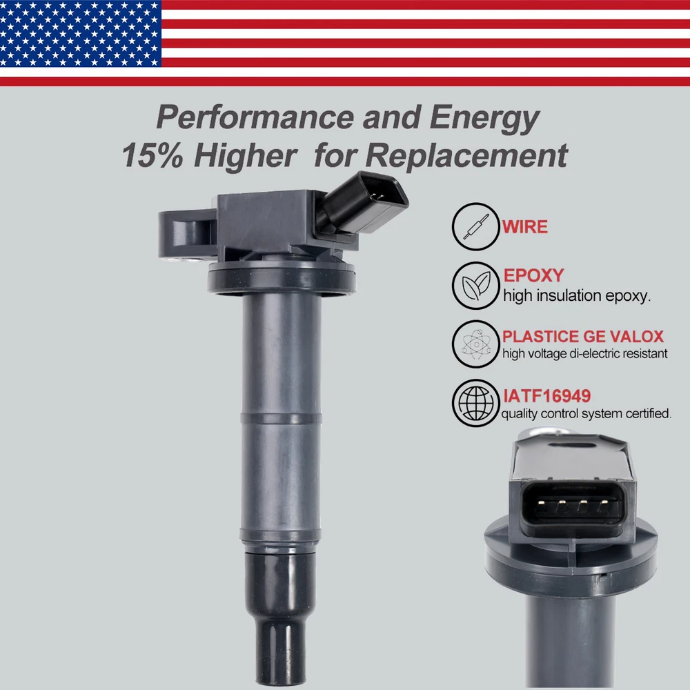 4X OEM Ignition Coil & 4X Spark Plugs & Gift w/plugs For Toyota Camry 2.4L UF333 Items Description Have any questions, please contact us first and we will do our best to solve it for you. Lifetime Warranty,feel free to buy without worries. Original standard, direct replacement for the old or broken one. Made with high quality material for maximum durability... Package included 4X Ignition Coils + 4X Spark Plugs + 4X Gift Connector Plugs(15% increase in performance and energy) Feature High Performance Brand new ignition coil set, never used or installed Ready to use, Direct Replacement Built to strict quality control standards 100% Factory tested Superior quality part with durable copper wire inside. OE+ durability Better than OEM QUALITY replacement Part Number/OEM Number UF333, UF494, 19185426, 19205387, 9008019023, 9091902243 9091902244, 9091902266, 9091919023, 90919-02244, 90919-02243 Compatible Vehicle(for reference only) 2010-2012 HS250h L4 2.4L 2009-2010 Vibe L4 2.4L 2005-2010 TC L4 2.4L 2002-2009 Camry L4 2.4L 2007-2011 Camry L4 2.4L Hybrid (Only for Vehicles Built in Japan) 2009-2010 Corolla L4 2.4L (Only for Vehicles Built in Japan) 2009-2010 Matrix L4 2.4L(Only for Vehicles Built in Japan) 2001-2007 Highlander L4 2.4L 2002-2003 RAV4 L4 2.0L 2002-2003 RAV4 L4 2.4L 2002-2006 Solara L4 2.4L About Us We are a professional auto parts manufacturer We offer 100% customer satisfaction. Please check our store for other car and truck parts. Please leave us positive feedback if you are satisfied with the item. But in case you aren't satisfied the item, please kindly let us know, we will try our best to solve it. Thank you for reading. Highly appreciated your order and hope you have good buying experience in our store. NOTE: Please make sure the part numbers match the part you are replacing. Please check our photos and make sure the part shown looks identical to your stock one. . Shipping Payment Return Policy About Us Contact us: Shipping The item will be shipped out within SAME business day upon the payment is completed. Our regular carrier is FedEx, USPS, and UPS. Please feel free to message us through eBay if you have not received tracking info after two business days, we will be happy to provide it to you. We have two warehouses, located in California and Kentucky. The goods are dispatched from which warehouse is closest to the address. Sometimes due to inventory reasons, it will be sent from a far away warehouse. Hope you can understand. Payment We accept PayPal , your order will be shipped out when your transaction status is clear. Please do make sure your address is correct. We only ship to confirmed address. Note: If you are failed to pay in 5 business days, an Unpaid payment will be filled. Return Policy We can only issue an exchange if the item is received defective or incorrect item shipped. All exchange items MUST be in brand new condition which means the item is never installed and kept in the original packaging, otherwise a 15% restocking fees will be charged. Professional installation is highly recommended. Buyer assumes all risk on shipment and usage. We will not resend product before we get the returned item from customers. If your item is defective or damaged, let us know within 30 days of your purchase and you can return it for a new one or a full refund with no questions asked. About Us We are a professional auto parts manufacturer We offer 100% customer satisfaction. Please check our store for other car and truck parts. Please leave us positive feedback if you are satisfied with the item. But in case you aren't satisfied the item, please kindly let us know, we will try our best to solve it. Thank you for reading. Highly appreciated your order and hope you have good buying experience in our store. NOTE: Please make sure the part numbers match the part you are replacing. Please check our photos and make sure the part shown looks identical to your stock one. . Contact us: 1. Negative feedback will not help resolve any problems you have, please contact us via eBay messages before leaving negative feedback, our customer service will make best effort to help you with the issues. 2. We maintain high standards of excellenceand strive for 100% customer satisfaction! Feedback is very important to us. We request that you contact us immediately Before you give us neutral or negative feedback, so that we can satisfactorily address your concerns. Brand ACS Type Ignition Coil Placement on Vehicle Front Manufacturer Warranty Lifetime Manufacturer Part Number 90919-02244, 9091002244, UF333 Interchange Part Number 90919-02244, 90919-02243, 90919-02266, 90080-19023, 9091902244, 9091902243, UF333, UF-333, 19185426, C1330 OE/OEM Part Number UF333, UF-333, 90919-02244 Package contents: 4X Ignition Coils + 4X Spark Plugs + 4X Gift w/plugs Product description: 15% increase in performance and energy Fitment Type: Direct Replacement