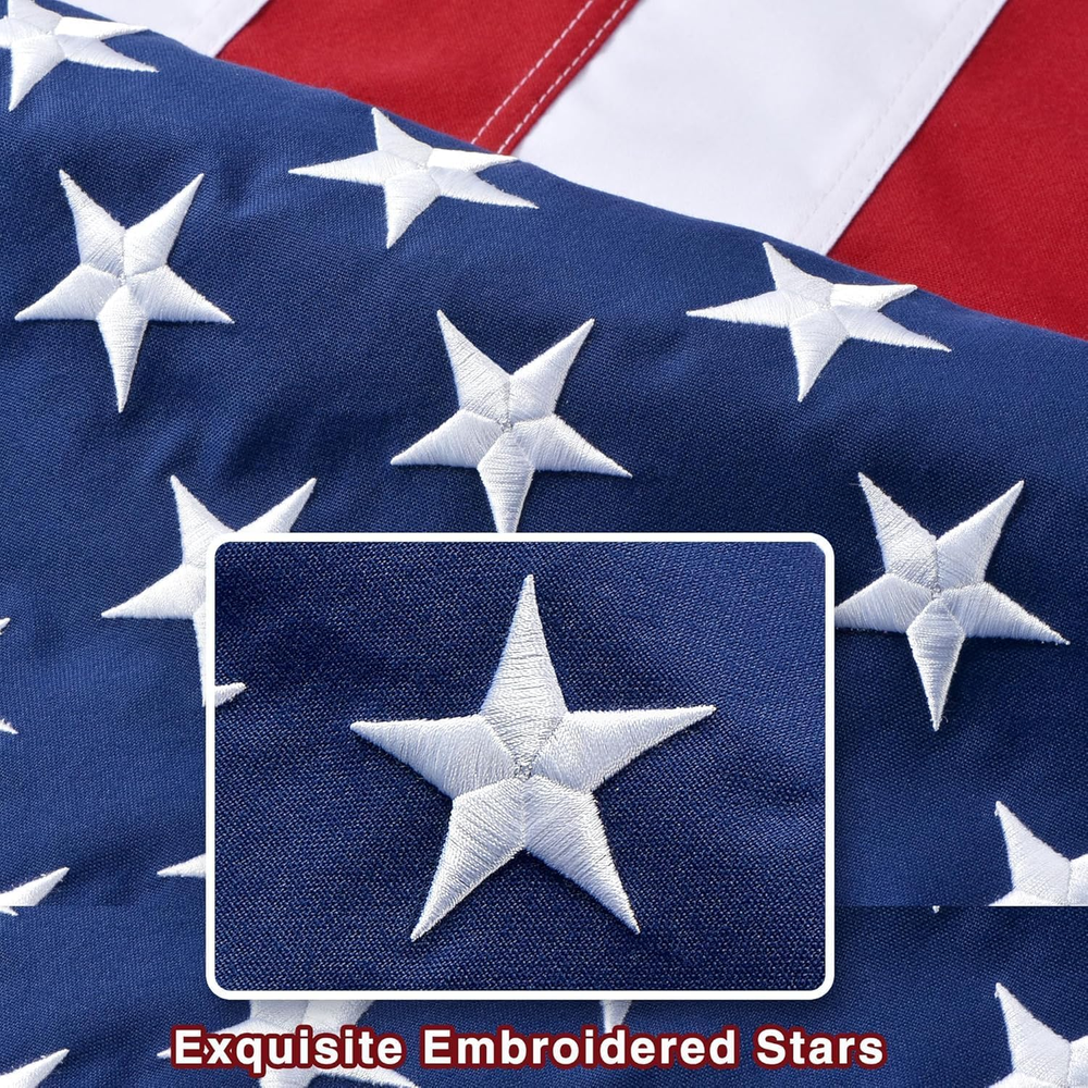 This flag looks absolutely stunning flying outside my home! The quality is impressive with embroidered stars and durable brass grommets that withstand all weather conditions. It waves beautifully even in light breezes and the colors remain vibrant. Perfect patriotic addition to any outdoor space!