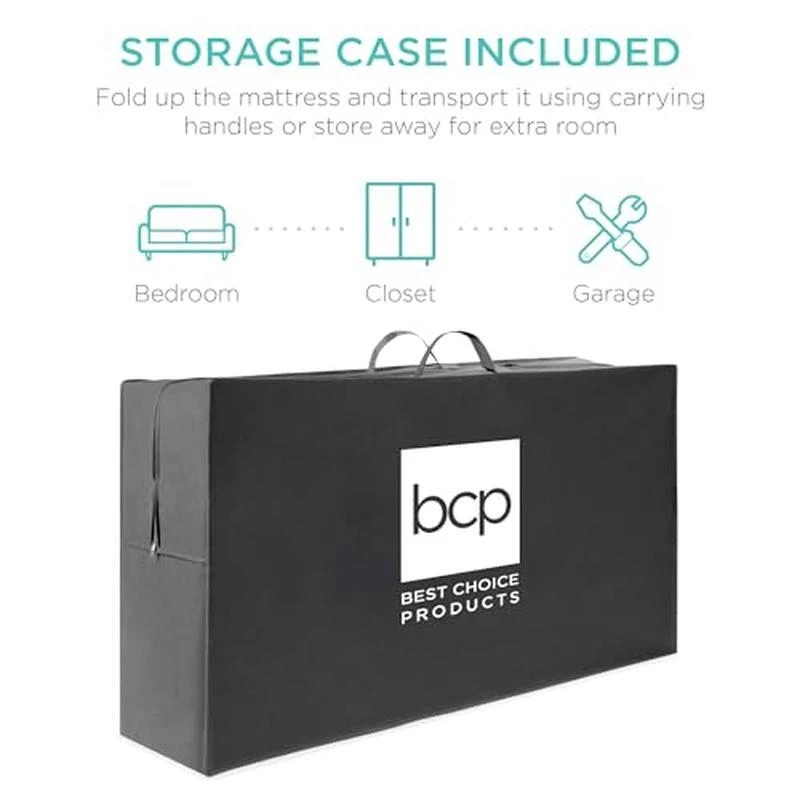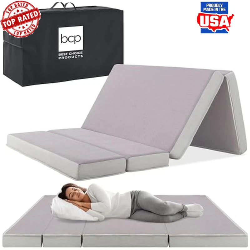 You may also like Cooling Mattress Pad King Size Bed Quilted Cover Cluster Fiber Fill Support New 119.79 USD 126.09 USD Free shipping 5% off Twin 2" Ultra Cooling Gel Memory Foam Mattress Topper with Cooling Cover Bedroom 115.92 USD 122.02 USD Free shipping 5% off Mattress Topper 2 Inch Gel Memory Foam Mattress Topper for Full Size Bed 87.43 USD 92.03 USD Free shipping 5% off All-in-One Bed Bug Blocker Water Resistant Zippered Mattress Protector Twin Size 24.16 USD 25.43 USD Free shipping 5% off About this item 4IN PLUSH FOAM: Soft yet firm foam provides maximum comfort and padding while protecting your mattress from dirt, pet fur, dead skin, and other pollutants MULTIPURPOSE: Great as a convenient guest bed, a comfy camping bed, or as a floor sofa during movie nights and gatherings with friends and family PORTABLE AND SPACE-SAVING: Simply slip the included carrying case over the portable, tri-fold mattress and zip it up to keep it neat and secure while you travel EASY SETUP: Open package in well-ventilated area to release harmless odor that should dissipate within several hours. Wait 24-72 hours for maximum expansion SUGGESTED MAINTENANCE: To wash and care for the cover, spot clean with a damp cloth using cold water and mild soap before wiping dry with a dry cloth; FLAT: 75"(L) x 39"(W) x 4"(Thick); FOLDED: 39"(L) x 26. 75"(W) x 12"(H) › product details Brand:Best Choice Products Size:Twin Product Dimensions:75"L x 39"W x 4"Th Top Style:Tight Top Cover Material:Polyurethane Number of Layers:1 Fill Material:Polyurethane Foam : : : Item Weight:14. 5 Pounds Item Firmness Description:Firm,Plush Age Range (Description):Adult, Toddler Construction Type:Foam Foldable Weight Bench Press Home Gym Incline Decline Sit-up Bench Assemble-Free 74.09 USD 77.99 USD Free shipping 5% off 28" Firewood Split Wood Load Heavy Pick Tool Rounds Sturdy Lift Drag Lightweight 51.21 USD 53.91 USD Free shipping 5% off Penny Candy Glass Jar with Lid Cookie Jar 1 Gallon Food Storage Jar for Snacks 13.03 USD 13.72 USD Free shipping 5% off 35"Octagonal Fire Pit Outdoor Fire Pit Wood Burning Firepit Bonfire Backyard US 103.73 USD 109.19 USD Free shipping 5% off Sunflower Coarse Kernels Hearts No Waste No Mess Bird Seed 50 Pounds 111.14 USD 116.99 USD Free shipping 5% off 8 Ounce Ball Peen Hammer Wood Handle Automotive Tool Drop Forged Steel New 9.82 USD 10.34 USD Free shipping 5% off 12 in Aluminum Nonstick Fry Pan Soft-Touch Handle Perfect Sauteing Cooking New 25.64 USD 26.99 USD Free shipping 5% off A23 High Output 4060 Lumen Super Bright LED Light Bulb 30W Warm White E26 Base 10.5 USD 11.05 USD Free shipping 5% off Ergonomic Gaming Chair Office Computer Executive Chair Leather Desk Chair Blue 126.2 USD Free shipping Wooden Gun Rack Display with Holder Floor Standing Indoor Rack Storage Garage 95.63 USD 100.66 USD Free shipping 5% off 9.5 Inch Tempered Glass Pie Plate Fluted Edge Oven Safe Baking Dish Decor US 10.39 USD 10.94 USD Free shipping 5% off 2 lb Dead Blow Hammer Non-Marring Soft Face Steel Shot Handle DIY Tool New 15.24 USD 16.04 USD Free shipping 5% off