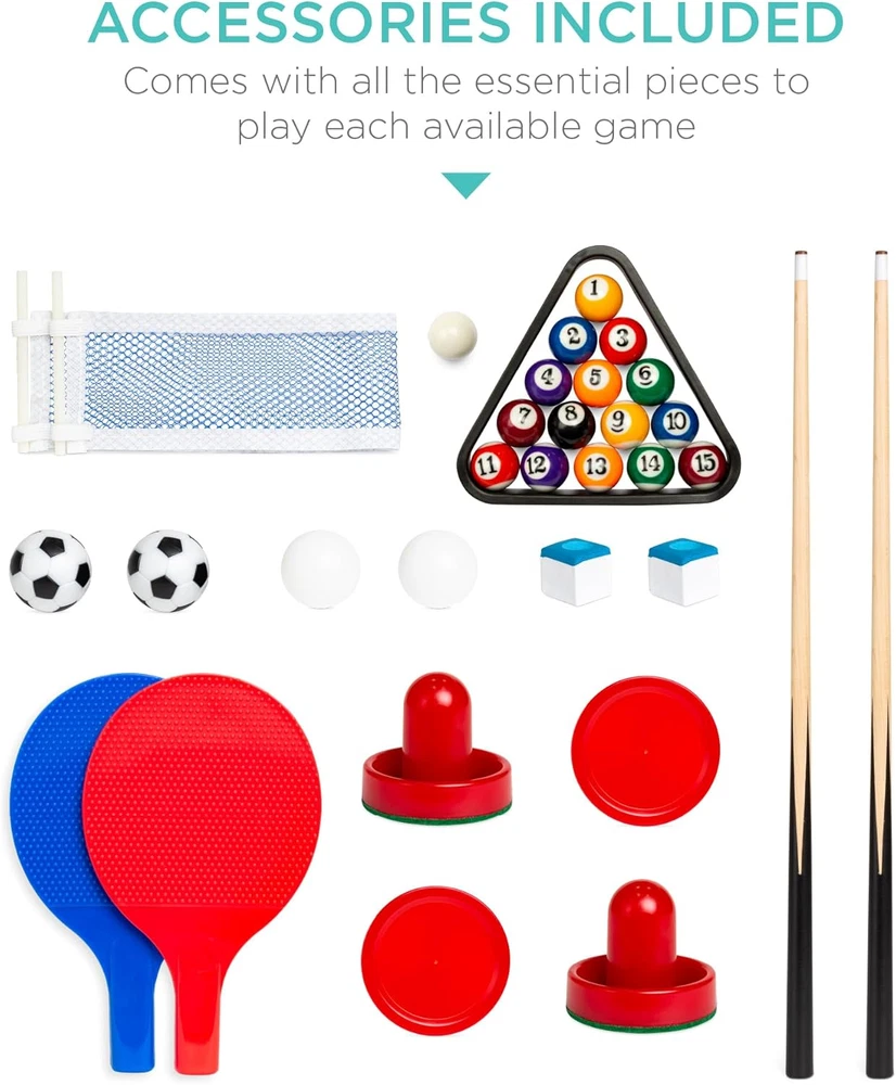 $ 38.095-in-1 Multi Game Table with Foosball Ping Pong Basketball and Billiards in Black and Blue
