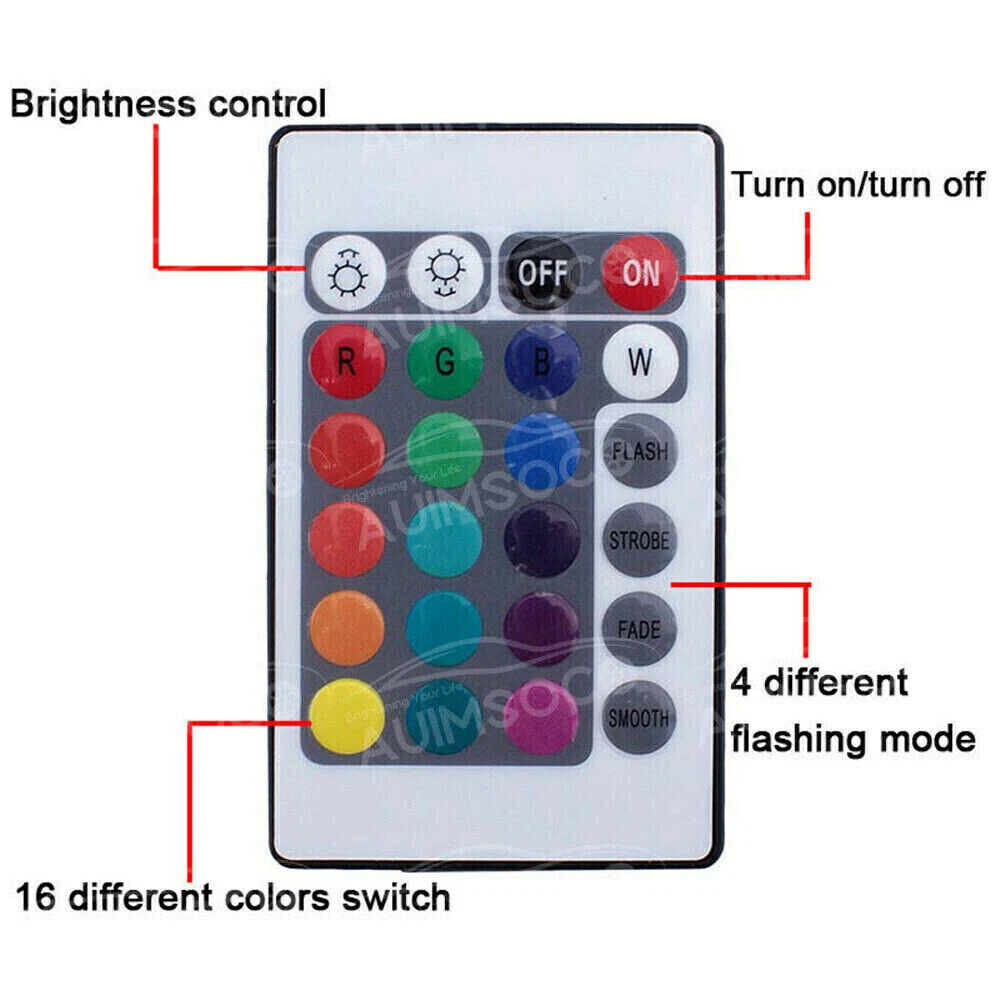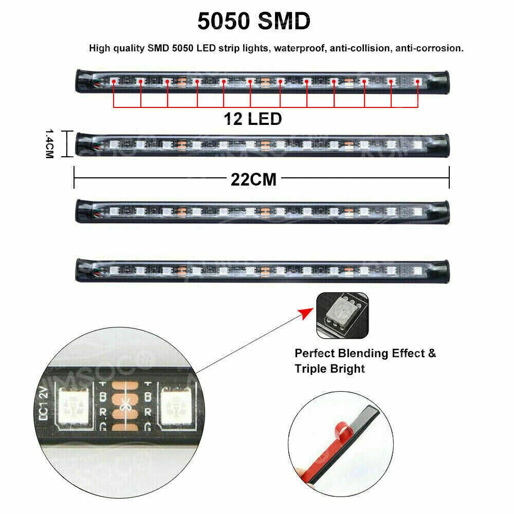 Waterproof Rating: IP65 Waterproof Manufacturer Warranty: 90 Day Bundle Description: 1set(4pcs)Led Car Atmosphere Lights + RF Controler To Control: Remote Ballast Included: Yes Attachment Type: Clip-On UPC: 610282355318 Interchange Part Number: Atmosphere Lights Superseded Part Number: Remote Control Colorful Decoration Lights gtin13: 610282355318 Number of Bulbs: 36 Bulb Color: Multicolor Features: Easy Installation, Waterproof Other Part Number: Car Atmosphere Lights Finish: Gloss Type: Decoration Lights Manufacturer Part Number: AUIMSOCOUSCLED254 Lifetime: 30,000 Hours Bulb Size: 4.7 Inch Placement on Vehicle: Front, Rear, Left, Right OE/OEM Part Number: Led Car Atmosphere Lights To Fit: Car Interior Decorative Lights Color: RGB Colors Red Orange Yellow Green Blue Purple etc MPN: AUTO-PART0311 Modification Description: Led Car Atmosphere Lights Wattage: 6W Size: 4.7-Inch LED Strips Fitment Type: Performance/Custom Brand: RDTDZSW Voltage: 12V LED Count: 9 Smart-Color LEDs per strip