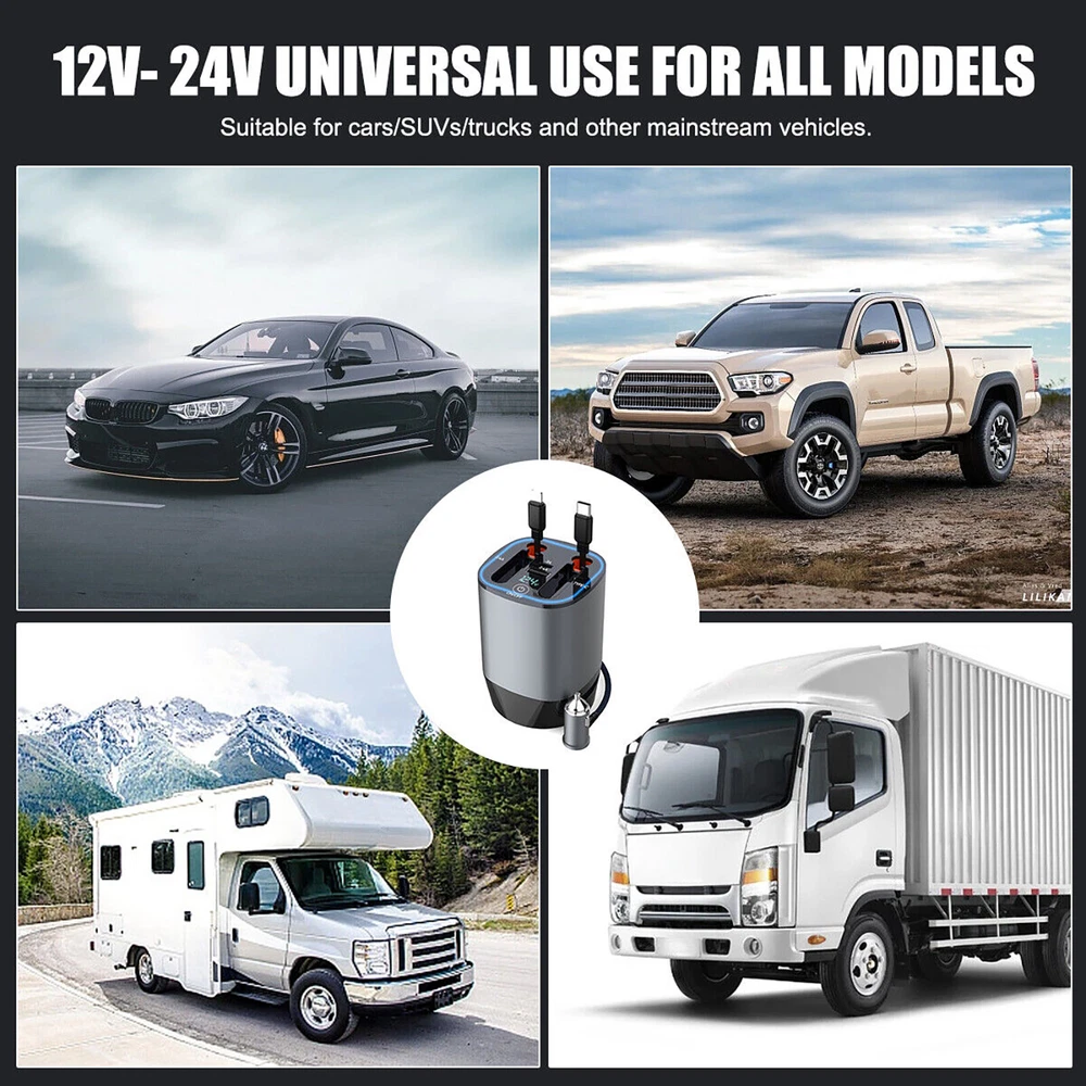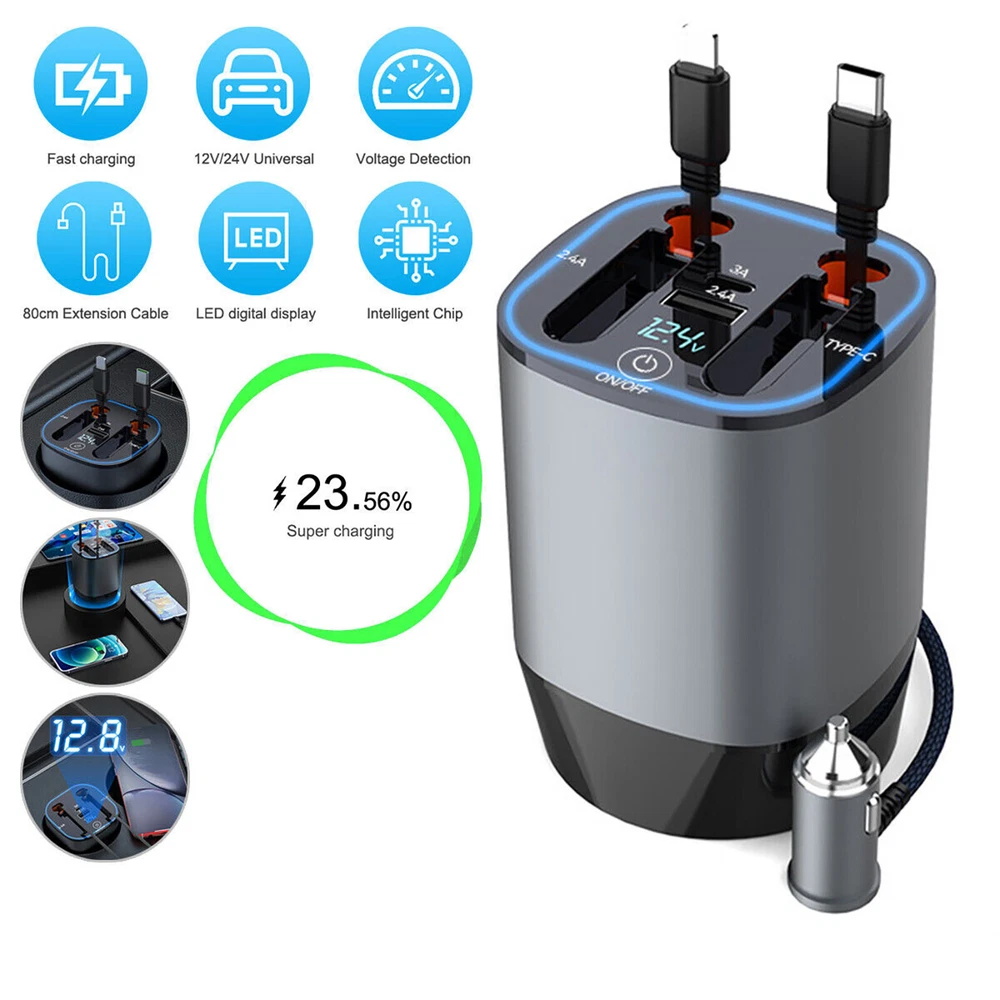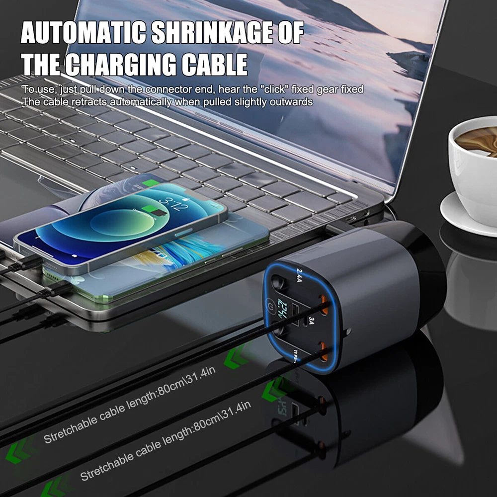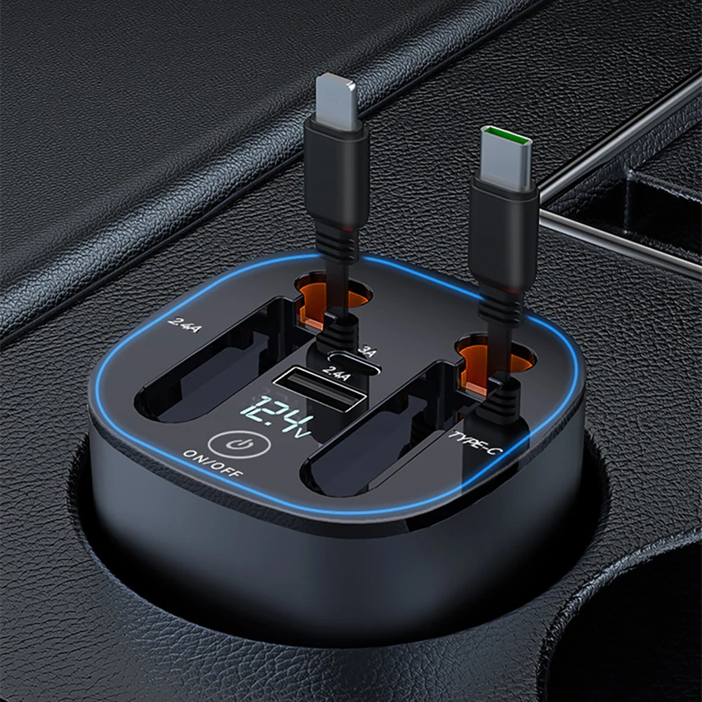 SAFE & SECURE SHOPPING 100% SATISFACTION GUARANTEED FAST SHIPPING Store Categories Store Categories You may also like 4IN1 Retractable Car Charger Dock USB Type-C Cable For Phone Fast Charge Adapter Product Description Features: Four in one interface: Type-C cable+8 PIN cable+USB-C+USB-A four interface charging Comes with a retractable cable: Comes with an 80CM long retractable charging cable for easy storage and free adjustment of length Atmosphere lights: Three colors of atmosphere lights, embellishing the car space Aromatherapy compartment (aromatherapy tablets need to be provided by oneself): There is an aromatherapy tablet compartment at the bottom, where you can place your own aromatherapy tablets to freshen the car air Nylon woven cigarette lighter power cord Voltage display: Real time display of current voltage to understand changes in car voltage Specifications: Material: ABS+PC Extension line length: 80cm Input voltage: DC 12-24V Atmosphere light: blue, red, purple (can be turned off) Power output: TYPE-C: 5V/2A, 9V/2A, 12/1.5A (18W ) For iPhone: 5V/2.4A, USB: 5V/2.4A Package include: 1* Car multifunctional charger Shipping Returns Contact Us Payment Shipping 1. Items sent from US warehouse. 2.Receiving time = Processing time + Shipping time 3. Processing Time: Around 1-2 business Days 4. Shipping Time: 3-5 business day it may have a little delay during some holiday (such as Christmas),any problem ,please feel free to contact Returns 1. 30 days warranty from the purchased date. Please contact us via email before returning the defective item. 2.Our warranty does not extended to any product that are physically damaged or that are not under normal operating conditions as result of misuse or improper installation on the buyer/user's part. 3.Return items should include the original packaging and all accessories. buyers MUST contact us for the returning address. 4.In all cases, buyers pay shipping fees at their own cost to return products for exchange or refund. We will be responsible for the postage of replacements. Refund will be made upon receipt of the returned item. Contact Us Pls contact us if you have any problems,we will try our best to solve for you Payment We accept all verified payment from eBay. Copyright © 2022 Tongtool