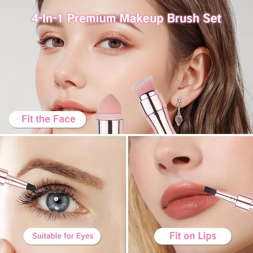 4-in-1 Makeup Brush Set: This premium double-ended retractable brush offers four essential beauty tools in overall. It includes a lip brush, eye brush, eyebrow brush, and face brush, making it ideal for applying cream, liquid, or powder cosmetics for a flawless finish Convenient Travel Size: Designed for easy portability, this mini makeup brush set is a practical tool for daily beauty routines, even for beginners. The set includes four compact brushes, making it ideal for touch-ups on the go Retractable Design for Protection: The retractable handle allows you to extend or retract the brush for easy storage and protection of the bristles, ensuring they remain undamaged. It’s great for frequent travelers and anyone looking to maintain their brushes on the go Great Present: This rose gold mini makeup brush set makes an elegant and functional present. Ideal for applying liquids, powders, or creams, the set is a thoughtful present for your girlfriend, wife, mom, or friend, making any occasion extra special Compact and Functional: These sturdy yet stylish mini travel makeup brushes are designed for easy storage in bags or purses, making them the ultimate beauty essential. Ideal for those looking to create natural makeup looks while on the move