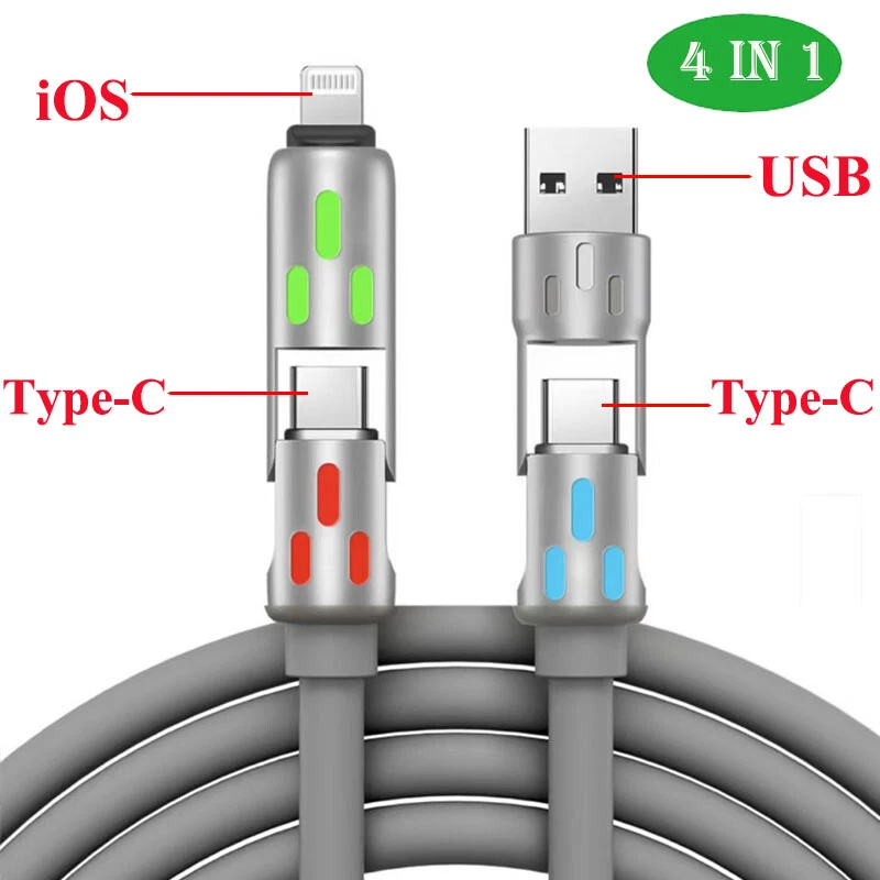 Material: Silica gel Cable Length: 120CM Personalize: No Number of Ports: 4 Items Included: Cable Tie, Charging & Data Sync Cable, Charging Cable Compatible Brand: Universal, For Apple, For Google, For HTC, For Huawei, For OPPO, For Samsung Compatible Model: For Apple iPhone 11, For Apple iPhone 11 Pro, For Apple iPhone 11 Pro Max, For Apple iPhone 12, For Apple iPhone 12 mini, For Apple iPhone 12 Pro, For Apple iPhone 12 Pro Max, For Apple iPhone 13 Pro, For Apple iPhone 13 Pro Max, For Apple iPhone 14, For Apple iPhone 14 Plus, For Apple iPhone 14 Pro, For Apple iPhone 14 Pro Max, For Apple iPhone 15, For Apple iPhone 15 Plus, For Apple iPhone 15 Pro, For Apple iPhone 15 Pro Max, Universal Type: 240W USB-C Cable Features: Anti-Fingerprint, Anti-Scratch, Case Friendly, Glossy, LED Brand: Unbranded MPN: Does Not Apply Connectivity: Dual USB, USB-C Design/Finish: Aluminum, Luxury