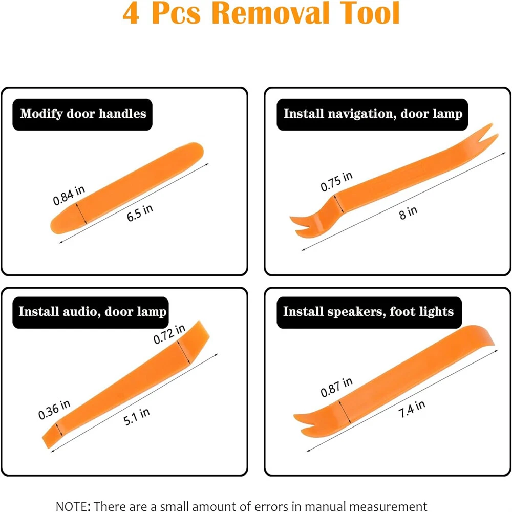 Store Categories Store Categories Car radio For PQ VW Golf Jetta Passat For MQB VW Golf 7 7.5 POLO B8 For Skoda Car radio accessories Wireless Carplay Wireless Android Auto OEM Carplay Radio touch screen Radio cable and frame Car Professional accessories Steering wheel control Gateway Radar Car camera Car hand tools Other 4pcs Car Trim Removal Tool Panel Door Dashboard Fastener Remover Pry Set USA Product View Detail Specificati ons: Colour: Orange(Like the picture show) Material: Plastic Quantity: 4 Pcs/Set Type: Car Panel Removal Tool Product Features: 100% brand new and high quality Made from High-Quality ABS Plastic 1 set car panel removal tool(include 4pcs) Easily remove Trim, Molding, Door panels, and Dashboards Great for automotive snap on trim panel and molding removal also works great for furniture repair soft and hardwoods Antique Restorations Upholstery, leather work etc Rugged Durable Plastic construction avoids scratching panels and leather interior Works on interior and exterior trim. Wide edge remover Narrow edge remover Pull-type remover Handle remover Upholstery clip remover Sizes: Longest tool 23.2cm, shortest 19.5cm Brand new and high quality.Anti mar poly finish to prevent scratches.Great for automotive snap on trim panel and molding removal. Also works great for furniture repair soft and hard woods,upholstery,leather work etc.Fiberglass reinforced for maximum strength. Works for Interior and Exterior trim and panels.Easily remove trim,moldings,door skins and panels,dash bezels etc. Can be resharpened and shaped with a file or grinding wheel Tool Package Content: 1* Large pry 1* Middle pry 1* Small pry 1* Flat pry Note: Please operating after the car is stopped and completely flameout Do not let your children play with the tool Shipping Policy Payment Method Returns Policy Shipping Policy Payment Method Returns Policy Copyright © 2017 DataCaciques Home Payment Shipping About us Contact us Store Categories Store Categories Car radio For PQ VW Golf Jetta Passat For MQB VW Golf 7 7.5 POLO B8 For Skoda Car radio accessories Wireless Carplay Wireless Android Auto OEM Carplay Radio touch screen Radio cable and frame Car Professional accessories Steering wheel control Gateway Radar Car camera Car hand tools Other Product View Detail Specificati ons: Colour: Orange(Like the picture show) Material: Plastic Quantity: 4 Pcs/Set Type: Car Panel Removal Tool Product Features: 100% brand new and high quality Made from High-Quality ABS Plastic 1 set car panel removal tool(include 4pcs) Easily remove Trim, Molding, Door panels, and Dashboards Great for automotive snap on trim panel and molding removal also works great for furniture repair soft and hardwoods Antique Restorations Upholstery, leather work etc Rugged Durable Plastic construction avoids scratching panels and leather interior Works on interior and exterior trim. Wide edge remover Narrow edge remover Pull-type remover Handle remover Upholstery clip remover Sizes: Longest tool 23.2cm, shortest 19.5cm Brand new and high quality.Anti mar poly finish to prevent scratches.Great for automotive snap on trim panel and molding removal. Also works great for furniture repair soft and hard woods,upholstery,leather work etc.Fiberglass reinforced for maximum strength. Works for Interior and Exterior trim and panels.Easily remove trim,moldings,door skins and panels,dash bezels etc. Can be resharpened and shaped with a file or grinding wheel Tool Package Content: 1* Large pry 1* Middle pry 1* Small pry 1* Flat pry Note: Please operating after the car is stopped and completely flameout Do not let your children play with the tool Shipping Policy Payment Method Returns Policy About Us Warranty Shipping Policy 1. All items are real stocked locally in our warehouse. 2. We process orders fast with 98% of items dispatched within 24 hours. 3. We ship to your eBay or PayPal address. Please make sure your eBay or PayPal address is correct before you pay the order. Providing us with your full name, phone number and detailed address after placing orders please. 4. Not received---It is buyer to be responsible for tracking packages and ensure smooth arrival. If tracking shows delivered but nothing, please contact us without hesitation. We will help to track the details make investigation. If incorrect address was provided by buyer, we will try to contact the carrier but not guarantee replacement. 5. Wrong address---If shows delivered we will try to retrieve package but no guarantee. If package is returned due to wrong or insufficiant address, buyer should be responsible for the shipping charges again. 6. Arrive damaged---Please contact us immediately! Receiver should check the outer package when receiving the package. If the outer package is damaged, it is suggested to reject the package or mark the damage on the receipt and notify the seller to submit the damage claim in time. 7. Wrong item received---It is important for you to check if product is the same as pictures showed on ebay then contact us. Payment Method 1. All payment is accepted 2. Of course, we and the platform must protect your property security from the beginning of placing the order to the successful delivery of the package. 3. If you are making a bank transfer, please leave your exact eBay username for reference. Otherwise, your payment will not be identified and cleared. Returns Policy Kindly Reminder: If you have any problem when use it,please contact us via email and we will be must to resolve it for you. we hope you will not open a case or return request via ebay and paypal before contacting us to resolve your problem When a return dispute filed, please accept our sincere apology for any inconvenience caused, we shall respect all reasonable refund requests. Please contact us by ebay message if there is any problem. Follow our return policy and fill in the necessary information, otherwise our warehouse may not be able to recognize and receive your return items. Returned products sh