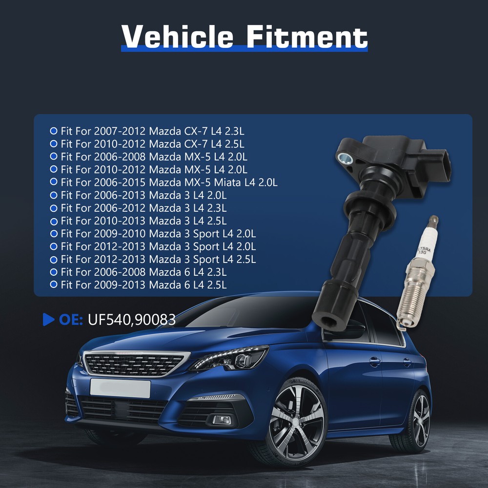Just installed these ignition coils and iridium spark plugs in my Mazda 3, and the difference is amazing! The engine runs smoother, starts quicker, and feels more responsive. The parts fit perfectly, and the fast shipping was a nice bonus. Great quality at a fair price—highly recommend for anyone looking to upgrade their Mazda’s performance!