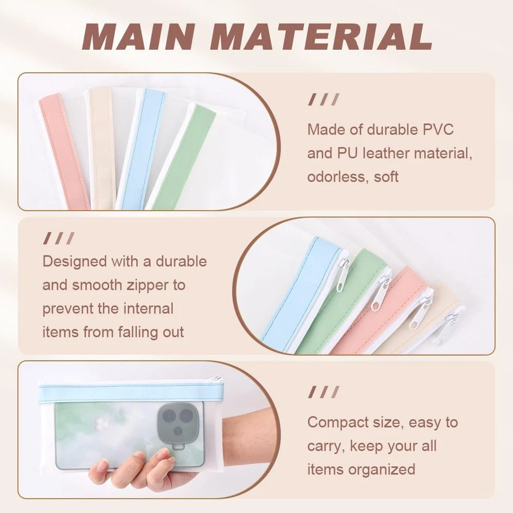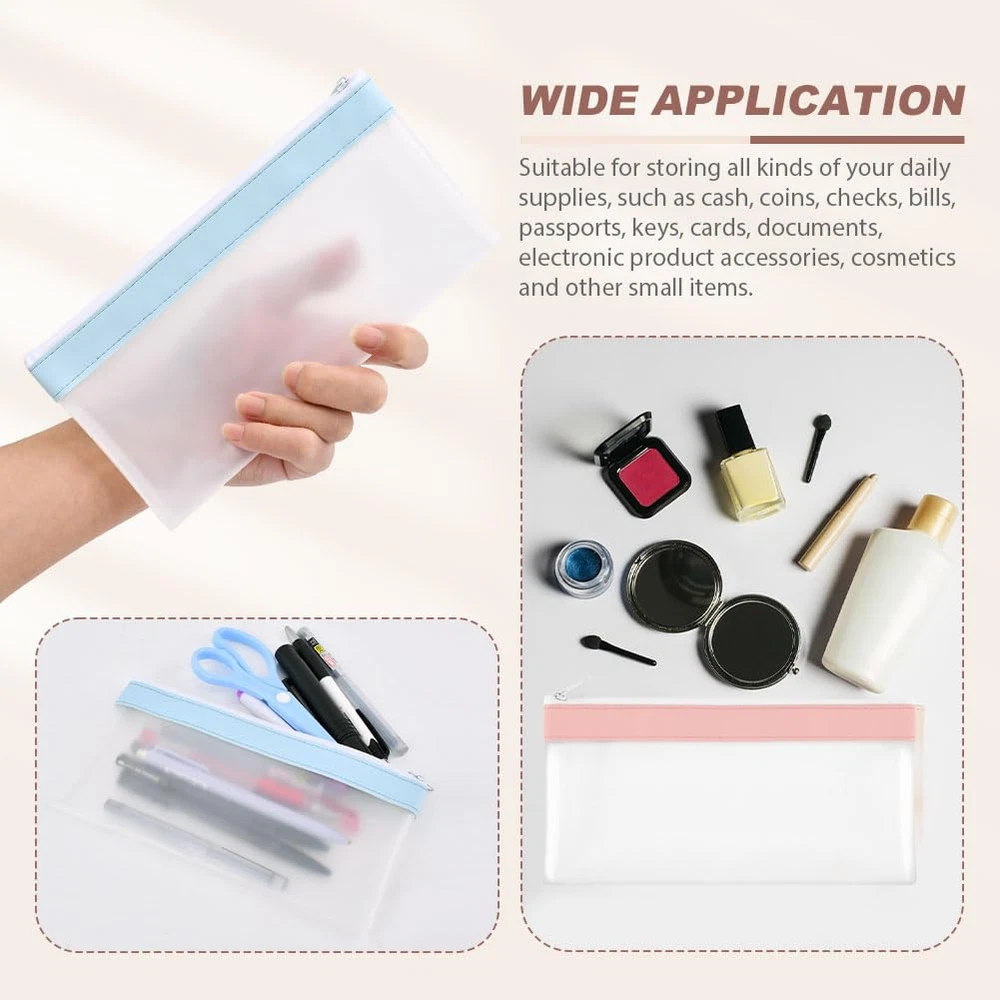 Description: 【PACKAGE CONTENT】You will recieve 4pcs different color bank deposit money bags wallets, includes white, pink, green, blue, each bag about 20x10cm/7.87x3.94inch(LxW), enough quantity to meet your daily needs. 【DURABLE MATERIAL】These deposit money bags are made of durable TPU and PU leather material, odorless, soft, smooth and comfortable touch, lightweight, waterproof, not easy to tear, durable and sturdy, easy to clean. 【WIDE APPLICATION】Suitable for storing all kinds of your daily supplies, such as cash, coins, checks, bills, passports, keys, cards, documents, electronic product accessories, cosmetics and other small items. 【ZIPPER DESIGN】Designed with a durable and smooth zipper to prevent the internal items from falling out, and items reliably and safely. The frosted transparent design allows you to see the internal items and is easy to find. 【VARIOUS OCCASIONS】Compact size, easy to carry, keep your all items organized, great storage organizer for home, school, work, office, travel, business, etc, great for anyone, practical gift for your lover, family and friends. Specification: Material: TPU+PU Leather Color: White, pink, green, blue Size(LxW): About 20x10cm/7.87x3.94inch Package includes: 4pcs x Money Bags(each color 1pc) Note: 1. Due to the light and screen difference, the item's color may be slightly different from the pictures. 2. Please allow 1-2 cm differences due to manual measurement. 【PACKAGE CONTENT】You will recieve 4pcs different color bank deposit money bags wallets, includes white, pink, green, blue, each bag about 20x10cm/7.87x3.94inch(LxW), enough quantity to meet your daily needs. 【VARIOUS OCCASIONS】Compact size, easy to carry, keep your all items organized, great storage organizer for home, school, work, office, travel, business, etc, great for anyone, practical gift for your lover, family and friends. 【ZIPPER DESIGN】Designed with a durable and smooth zipper to prevent the internal items from falling out, and items reliably and safely. The frosted transparent design allows you to see the internal items and is easy to find. 【WIDE APPLICATION】Suitable for storing all kinds of your daily supplies, such as cash, coins, checks, bills, passports, keys, cards, documents, electronic product accessories, cosmetics and other small items. 【DURABLE MATERIAL】These deposit money bags are made of durable TPU and PU leather material, odorless, soft, smooth and comfortable touch, lightweight, waterproof, not easy to tear, durable and sturdy, easy to clean.
