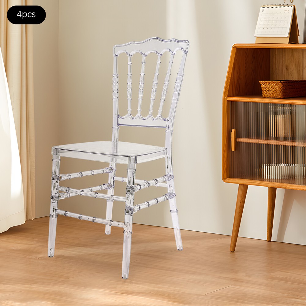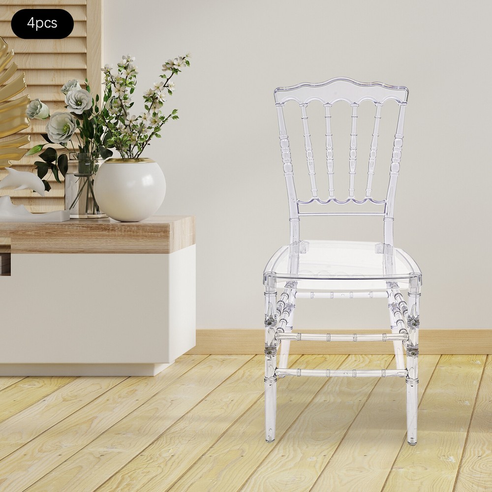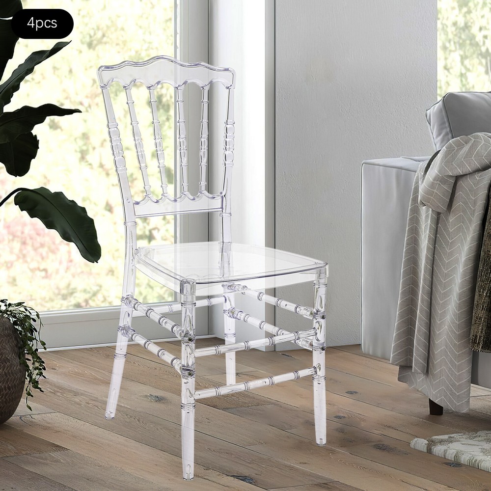 Specification Material: PC Color: Clear Process: Injection Molding Style: Modern Assembly Required: Yes Mounting Type: Free Standing Number of Pieces: 4 Product Overall Height: 89cm/35.04in Sitting Area: 38.5*38.5cm/15.16*15.16in Backrest Size(W*H): 48*37cm/18.9*14.57in Leg Height: 43.5cm/17.13in Footprint Size: 38*37cm/14.96*14.57in Package Size: 96*43*29cm/37.8*16.93*11.42in Each Load Capacity: About 200kg/440.92lbs Gross Weight: 21kg/46.3lbs Net Weight: 20kg/44.09lbs Package Included 4* Clear Dining Chairs Other Accessories for Assembly 4pcs Stacking Clear Dining Chairs Elegant Wedding Party Event Crystal Chairs Set Welcome to our store^-^ Description This crystal cl ear and translucent chair from us is a seat that blends modern design with artistic beauty. It combines high-quality PC material with exquisite injection molding technology, aiming to create a practical and visually appealing seat that will be a sight to behold, whether it is used in restaurants, banquets, wedding venues, or modern homes. Key Features Made to Last: This product is made of high-quality PC, treated with an injection molding process, which is highly flexible, with fewer bubbles, and has UV , heat acid, and alkali resistance to ensure a long service life. Strong Load-bearing Capacity: Thanks to the high-quality materials and the four-legged construction, the product has a weight capacity of up to 440.92lbs and high stability, so you can sit with confidence! Exquisite Appearance: The high transparency and gloss of the PC material give the chair a unique crystal texture, making it a striking focal point in any interior space, adding a modern and artistic touch. Ergonomic Design: The curved design of the back of the chair follows the principle of ergonomics to ensure that while providing an elegant appearance, it also gives the user a comfortable sitting feeling, suitable for long-time use. Easy to Clean & Maintain: Thanks to its smooth surface, it is not easy to adsorb dust and stains, so you just need to simply wipe it to keep it clean, reducing the difficulty of daily maintenance. High Spatial Adaptability: The clear color means it does not take up too much space visually, especially suitable for small households or environments that need to expand the visual effect, creating an open and bright atmosphere. Easy Assembly: Simple structure and complete accessories help you finish the installation quickly and use it in a short time. Ideal Gift: With good performance and a modern appearance, it can be used as an ideal housewarming gift for parents, friends, and lovers so that they can also enjoy a more exquisite life. Good Customer Service: We aim to provide quality products and services. If you have problems, please feel free to contact us. We will reply and solve the problem for you as soon as possible. Details Large Sitting Area: 15.16*15.16in seat area increases the force area and improves the comfort of the seat. Bamboo Joints Shape: This design improves the aesthetics of the seat and adds to its style. Application This product is suitable for family living rooms, banquet halls, dance halls, wedding halls, etc. Specification Material: PC Color: Clear Process: Injection Molding Style: Modern Assembly Required: Yes Mounting Type: Free Standing Number of Pieces: 4 Product Overall Height: 89cm/ 35.04in Sitting Area: 38.5*38.5cm/15.16*15.16in Backrest Size(W*H): 48*37cm/ 18.9*14.57in Leg Height: 43.5cm/17.13in Footprint Size: 38*37cm/14.96*14.57in Package Size: 96*43*29cm/37.8*16.93*11.42in Each Load Capacity: About 200kg/440.92lbs Gross Weight: 21kg/46.3lbs Net Weight: 20kg/44.09lbs Package Included 4* Clear Dining Chairs Other Accessories for Assembly Notes Please make sure to drive the screws all the way down to fix the legs and chair body securely together. After assembly, the chair may be a bit squeaky. Although may be a cause for concern, this is not a quality issue, but rather a result of the material type. The chair backs have some flex, but the legs are solid and stable. Please consider that some squeakiness should be expected to be tolerated before you buy. We also recommend manually screwing during assembly instead of using an electric drill, as the speed and excess power of electric drills may strip screws. Please allow the slight color difference caused by the shooting light and 1-3cm error due to manual measurement, and make sure you do not mind before Payment Delivery details Terms of sales About us Contact us Payment We accept ebay payment 。 Fees such as import duties, taxes are not included in the item price or shipping costs. These charges are the buyer's responsibility. Delivery details Shipping: 2-9 working days to: USA Terms of sales We maintain high standards of excellence and strive for hundred percent customer satisfaction. Feedback is very important to us. We hope that you contact us immediately before you give neutral or negative feedback, so that we can address your concerns. It is impossible to address issues if we do not know about them! About us Your satis faction is our ultimate goal. We work hard to earn your trust and future business. Our certified technicians have tested each item before shipping. The unit comes with 1 year limited warranty on all manufacturing defects. a) If you receive a defective item, you may return it or ask for a discount. Please contact us within 14 days after you receive the package. b) What you returned must be intact and in its original packaging as re? u. Customer is responsible for shipping costs of the returned item. c) We will cover the cost of shipping back t with the shipping rate indicated in the registration page. We will send you a new unit or refund the full payment you paid. Thank you. Contact us Business Hour Business Hour: Monday To Friday: 8:30 AM to 5:00 PM (Beijing China time) Due to time zones, our reply to your questions may not be immediately. But within above working time, we will reply your email within 24 hours. If it's non-workd