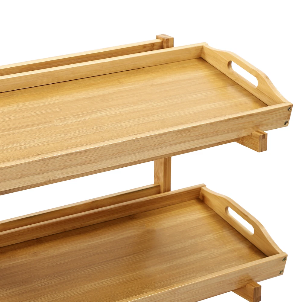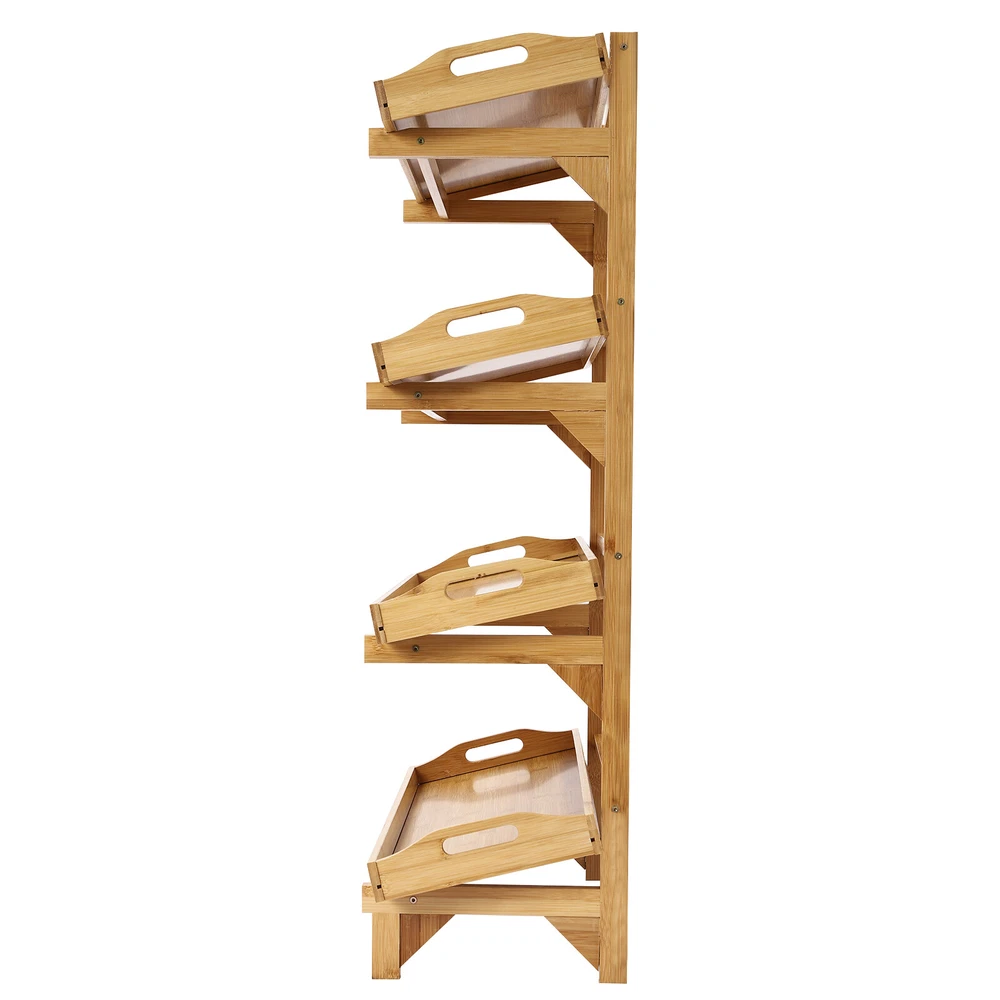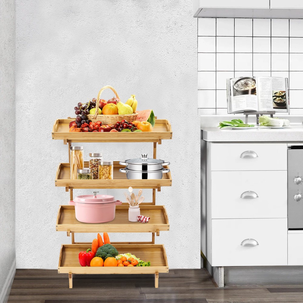 Description This storage rack is not only sturdy and durable but also thoughtfully designed with enough storage space. The 4-tier design allows you to sort various fruits, vegetables, etc., The raised legs and sturdy construction allow each tier of product to hold up to 22.05 lbs. With this product, you can create a neat and cozy kitchen environment. Key Features High-quality Materials: Premium bamboo and MDF make this product wear-resistant, corrosion-resistant, and not easy to deform, so it can maintain aesthetics and practicality for a long time. Storage Assistant: The 4-tier design and suitable tier spacing (9.2in) provide you with plenty of storage space to sort fruits, vegetables, beverages, snacks, etc. on different tiers for your convenience, bidding farewell to cluttered stackin 4-tier Storage Rack, Bamboo Storage Shelving Floor Standing with Removable Trays Description This storage rack is not only sturdy and durable but also thoughtfully designed with enough storage space. The 4-tier design allows you to sort various fruits, vegetables, etc., The raised legs and sturdy construction allow each tier of product to hold up to 22.05 lbs. With this product, you can create a neat and cozy kitchen environment. Key Features High-quality Materials : Premium bamboo and MDF make this product wear-resistant, corrosion-resistant, and not easy to deform, so it can maintain aesthetics and practicality for a long time. Storage Assistant : The 4-tier design and suitable tier spacing (9.2in) provide you with plenty of storage space to sort fruits, vegetables, beverages, snacks, etc. on different tiers for your convenience, bidding farewell to cluttered stacking. Thoughtful Design : The tray can be placed flat or tilted on the frame for easy access and use. In addition, you can also disassemble it for individual use, providing you with more convenience. Strong Load-bearing Capacity : Thickened materials, stable rectangular construction, and sturdy triangle reinforcement make this product withstand about 22.05 lbs in each tier, so you can use it with confidence without worrying about collapse. Versatile Appearance : It adopts a classic log color scheme that can match most decorating styles and color themes, which is suitable for most use scenarios without limitations. Simple Installation : The simple structure, pre-drilled holes, and complete accessories allow you to complete installation and start using it in a short period. Ideal Gift : Beautiful appearance and practical function make it an excellent housewarming gift for family and friends. Effortless Cleaning : The smooth surface and simple structure make the storage rack easy to clean with water and a damp cloth. Good Customer Service : We stand behind all our guests and look forward to assisting you with your purchase. It is our pleasure to answer your confusion and questions. The end of the story between us is not "we sell and you buy". Details Guardrails : The raised guardrails on the tray prevent items from slipping. Raised Bottom : It facilitates air circulation and allows for easy cleaning of the bottom. Smooth Edges : They not only enhance the aesthetics of the product but also improve safety during installation and use. Practical Handles: The holes on both sides of the tray can serve as handles to facilitate your retrieval of the tray. Application It is suitable for storing fruits, vegetables, snacks, drinks, and children's toys in kitchens, living rooms, fruit shops, garages, offices, etc. Specifications Color: Log Color Material: Bamboo, MDF Style: Modern Shape: Rectangular Assembly Required: Yes Mounting Type: Floor Standing Number of Tiers: 4 Each Tier Load-bearing Capacity: 10kg/22.05lbs Tier-spacing: 23.5cm/9.2in Overall Product Size: 66*28*100cm/26*11*39.4in Frame Length: 59.5cm/23.4in Each Tray Size: 66*25*6.5cm/26*9.8*2.6in Package Size: 101*29.2*7.8cm/39.76*11.5*3.07in Gross Weight: 5.2kg/11.46lbs Net Weight: 4.5kg/9.92lbs Package Included 1* Storage Rack All Accessories for Installation Notes Please avoid soaking this product in water and exposing it to sunlight. We recommend that it be installed by two people and that other items are not included. Please allow the slight color difference caused by the shooting light and the 1-3 cm error due to manual measurement, and make sure you do not mind before ordering. Welcome to Rongorange Payment Delivery details Terms of sales About us Contact us Payment We accept ebay payment 。 Fees such as import duties, taxes are not included in the item price or shipping costs. These charges are the buyer's responsibility. Delivery details Shipping: 2-9 working days to: USA Terms of sales We maintain high standards of excellence and strive for hundred percent customer satisfaction. Feedback is very important to us. We hope that you contact us immediately before you give neutral or negative feedback, so that we can address your concerns. It is impossible to address issues if we do not know about them! About us Your satis faction is our ultimate goal. We work hard to earn your trust and future business. Our certified technicians have tested each item before shipping. The unit comes with 1 year limited warranty on all manufacturing defects. a) If you receive a defective item, you may return it or ask for a discount. Please contact us within 14 days after you receive the package. b) What you returned must be intact and in its original packaging as re? u. Customer is responsible for shipping costs of the returned item. c) We will cover the cost of shipping back t with the shipping rate indicated in the registration page. We will send you a new unit or refund the full payment you paid. Thank you. Contact us Business Hour Business Hour: Monday To Friday: 8:30 AM to 5:00 PM (Beijing China time) Due to time zones, our reply to your questions may not be immediately. But within above working time, we will reply your email within 24 hours. If it's non-workdays, please kindly be patient and wait till Mo