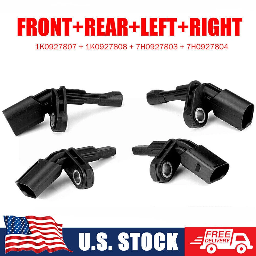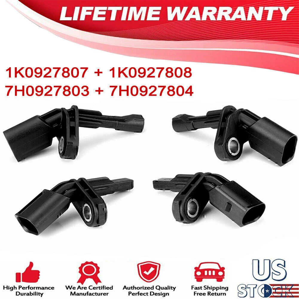 4 ABS Wheel Speed Sensor Front Rear Left & Right Fits for Audi & Volkswagen Set Description: Connector Gender:Female (1) Mounting Location:Wheel Terminal Gender:Male (1) Terminal Type:Blade Connector Quantity:1 Terminal Quantity:2 Features: Aftermarket Premium High Quality ABS Wheel Speed Sensor Set of 4 Pieces Front / Rear - Left & Right Part# 1K0927807 + 1K0927808 + 7H0927803 + 7H0928804 Cross-Reference 1K0 927 807 + 1K0 927 807 + 7H0 927 803 + 7H0 927804 GT7610-505 SU11906 / SU 11905 / SU11668 / SU11668 / SU11669 ALS430 / ALS467 / ALS468 / ALS469 Fitments: AUDI TT 2008-2015 PORSCHE CARRERA GT 2004-2005 SEAT LEON 2007-2011 VOLKSWAGEN AMAROK 2011-2013 VOLKSWAGEN BEETLE 2012-2019 VOLKSWAGEN BORA 2006-2009 VOLKSWAGEN CC 2009-2017 VOLKSWAGEN EOS 2007-2016 VOLKSWAGEN GOLF 2010-2014 VOLKSWAGEN GOLF CITY 2010 VOLKSWAGEN GOLF SPORTWAGEN 2010-2011 VOLKSWAGEN GTI 2006-2014 VOLKSWAGEN JETTA 2005-2018 VOLKSWAGEN JETTA CITY 2007-2009 VOLKSWAGEN PASSAT 2006-2019 VOLKSWAGEN PASSAT CC 2009-2010 VOLKSWAGEN R32 2008 VOLKSWAGEN RABBIT 2006-2009 VOLKSWAGEN TIGUAN 2009-2018 Location: The wheel speed sensor will be located at each individual wheel or on axle housing on vehicles equipped with a solid axle. The speed sensor may be part of the wheel hub bearing assembly or as an individual component where the sensor protrudes through the bearing assembly or into the brake back plate. What It Does: The wheel speed sensors are responsible for reporting individual wheel speed to the Anti-Lock Brake Control Module. The wheel speed sensor can be an analog type Failure Symptom: ABS brake light illumination, false activation of the ABS system due to an inconsistent signal from a sensor P lease Note: Any modifications to an item of any kind before contacting us will void any and all warranty coverage for this item. Please contact us before modifying the part so that we have the opportunity to correct the situation. Package Includes: Set of 4 ABS Wheel Speed Sensor