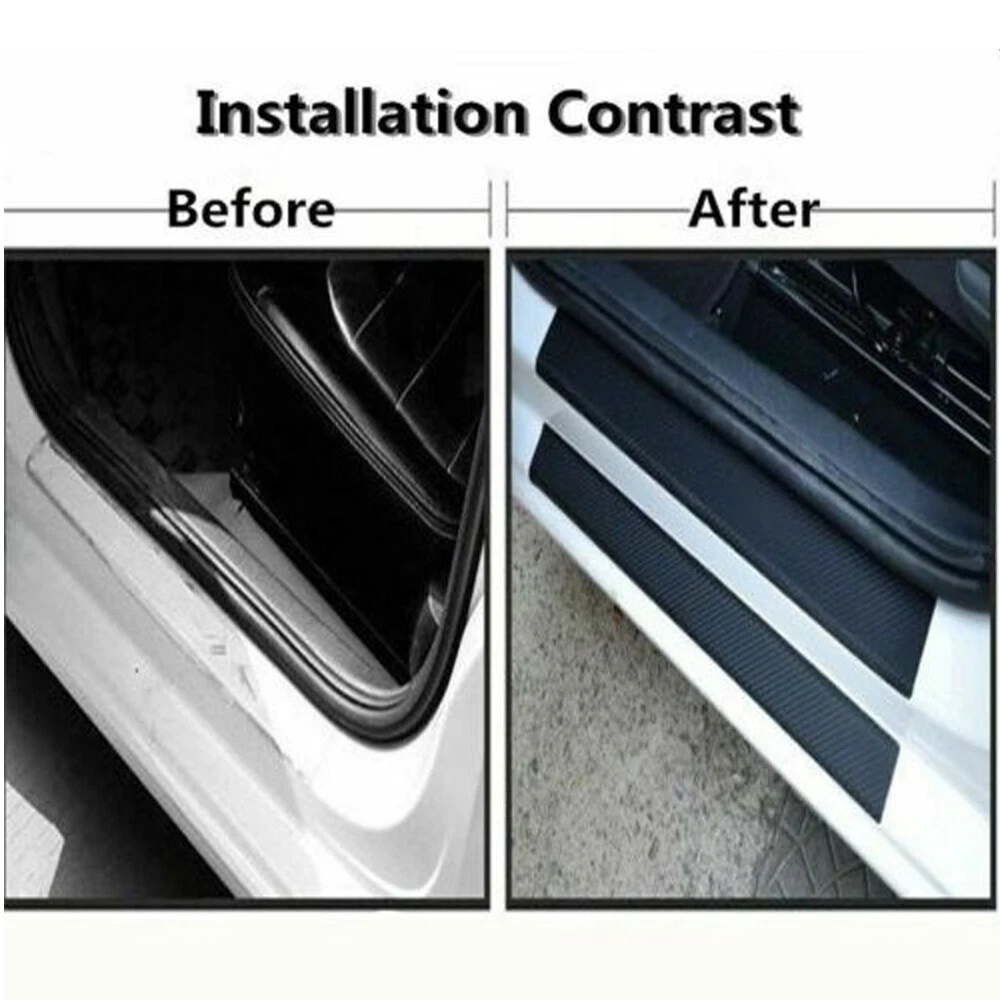 Features: 1.Product Name: car accessories door sill scuff welcome pedal threshold carbon fiber Protect Stickers 2.Material:3D carbon fiber(Not real carbon fiber ) 3.Package:4pcs per set (2pcs front door sill scuff cover+2pcs rear door sill scuff cover) 4.front door:60*6.8cm & rear door: 40*6.8cm 5.Applicable Car:Universal(Can be cut) Installation is very easy. Color: Black Packing Including: 4 x Carbon Fiber Sticker