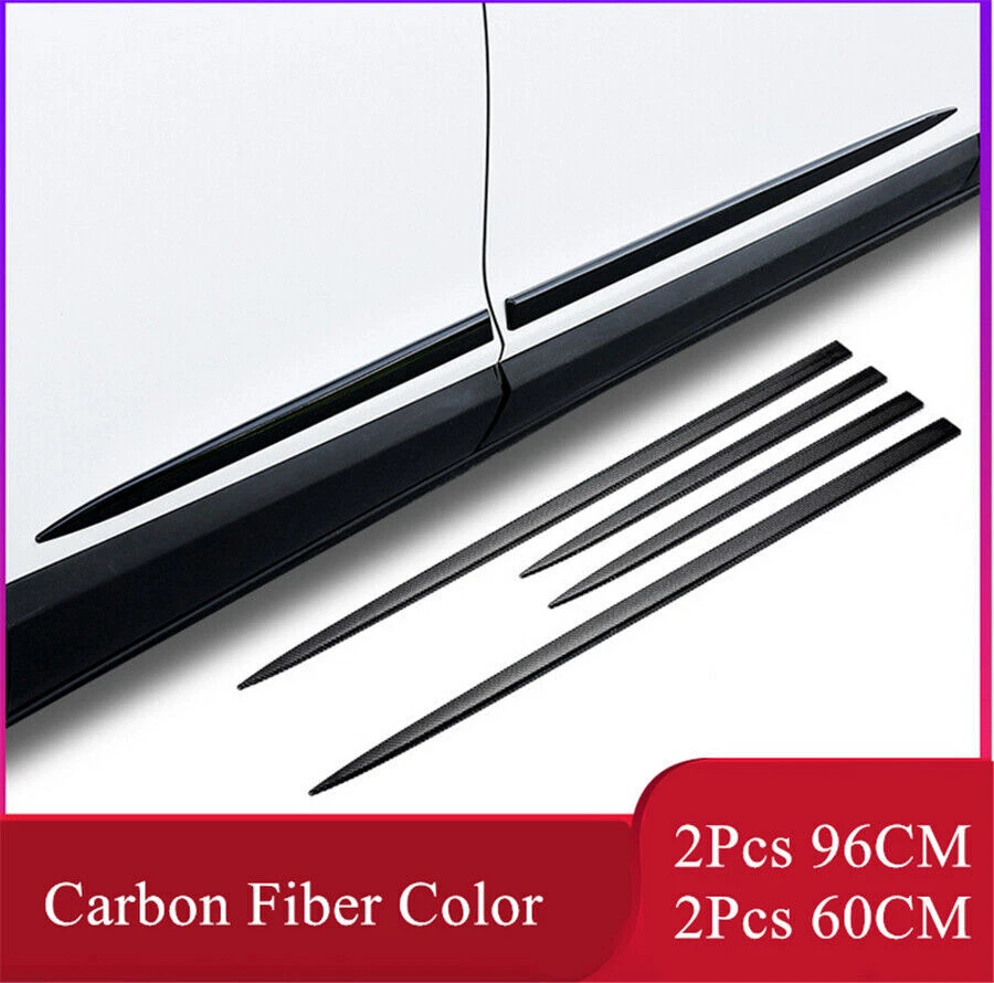 4x Car Side Skirt Garnish Cover Body Door Trim Protector Strip Carbon Fiber Look