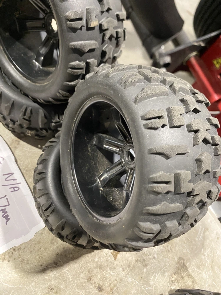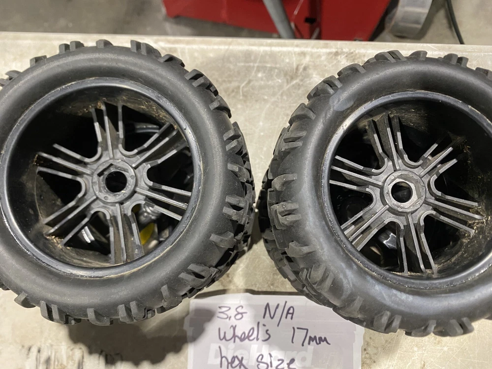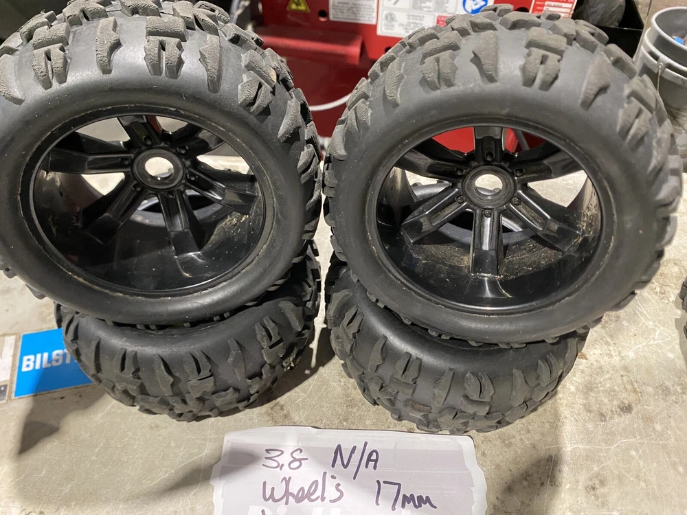 Selling 4x 3.8 17mm hex unbranded black wheels selling as is no returns any questions plz ask thanks for Looking