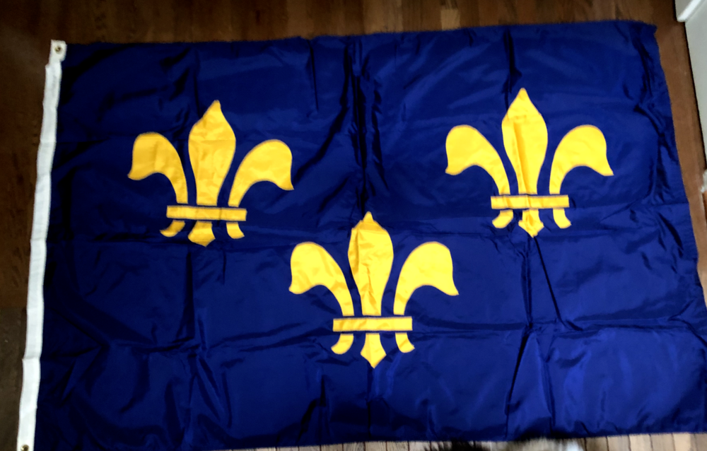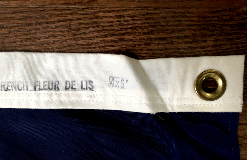 This is in the style of The Royal Banner of France or "Bourbon Flag". The House of Bourbon ruled France from 1589 to 1792 and again from 1815 to 1848. Old Kingdom of France. 4x6 feet in size and made of nylon with brass grommets. It has double stitching on three sides and triple stitching at end. New old stock.