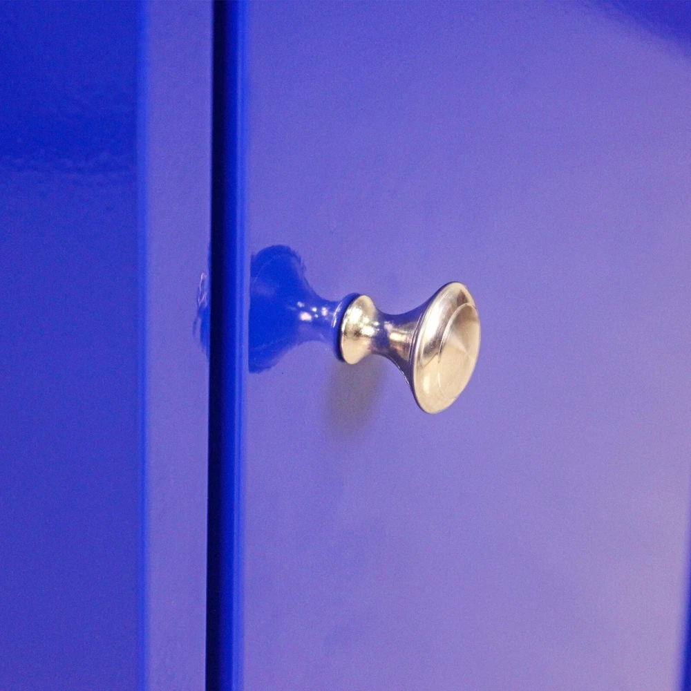 About this item: There are five drawers in the metal tool cabinet. This product does not have a lock. The metal storage cabinet comes with four wheels, so you can move the cabinet around freely. The metal storage cabinet has large internal storage space, which can meet the storage needs of customers. The overall bearing capacity of the tool cabinet is 100KG. The bearing capacity of drawers is 15KG with ball guide rails. There are multifunctional handles on the side of the tool cabinet for a screwdriver. Inside the storage cabinet there is an adjustable shelf and 4 adjustable bolts The inside door of the storage cabinet has holes for hooks to hold some tools. Specification: Color: Blue Material: Metal Size: 22.95" L x 11" W x 37.2" H Surface Technics : Powder Coating Usage Scenarios : Garage; Workshop Thickness : 0.5~0.6MM Weight (lbs.): 38.60