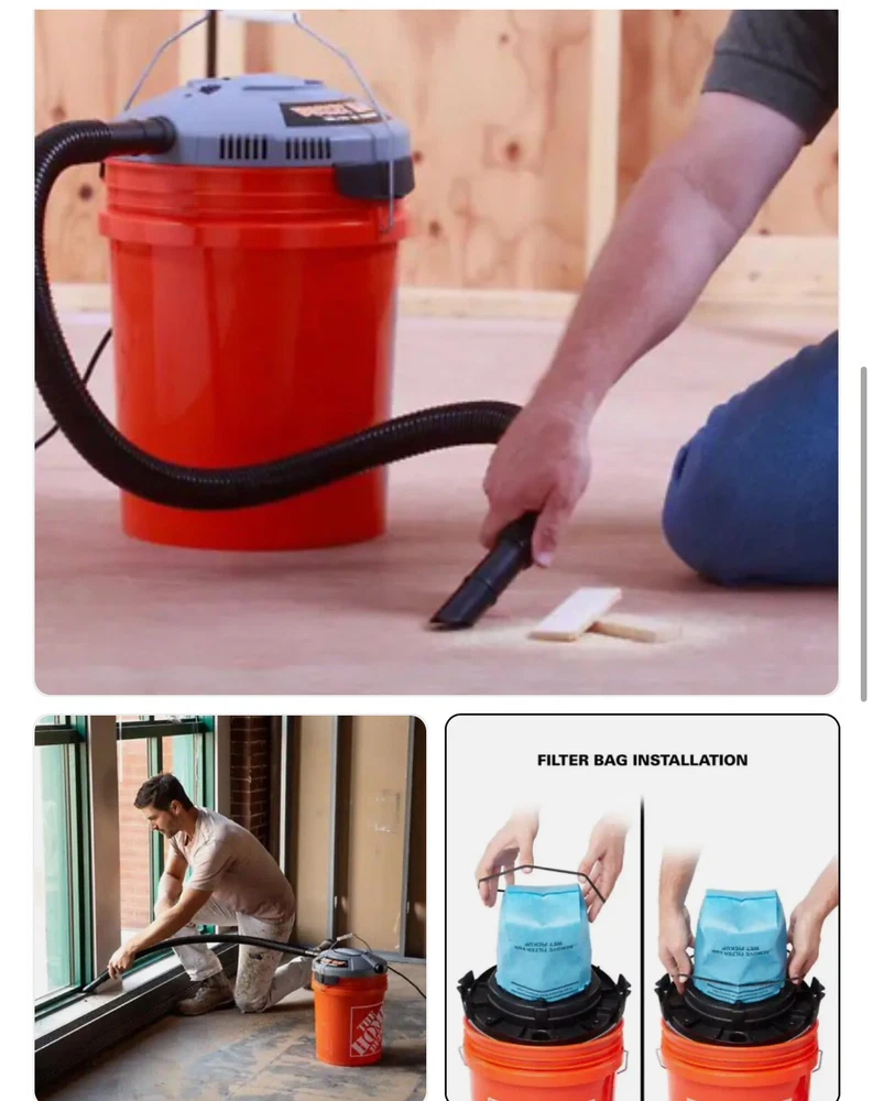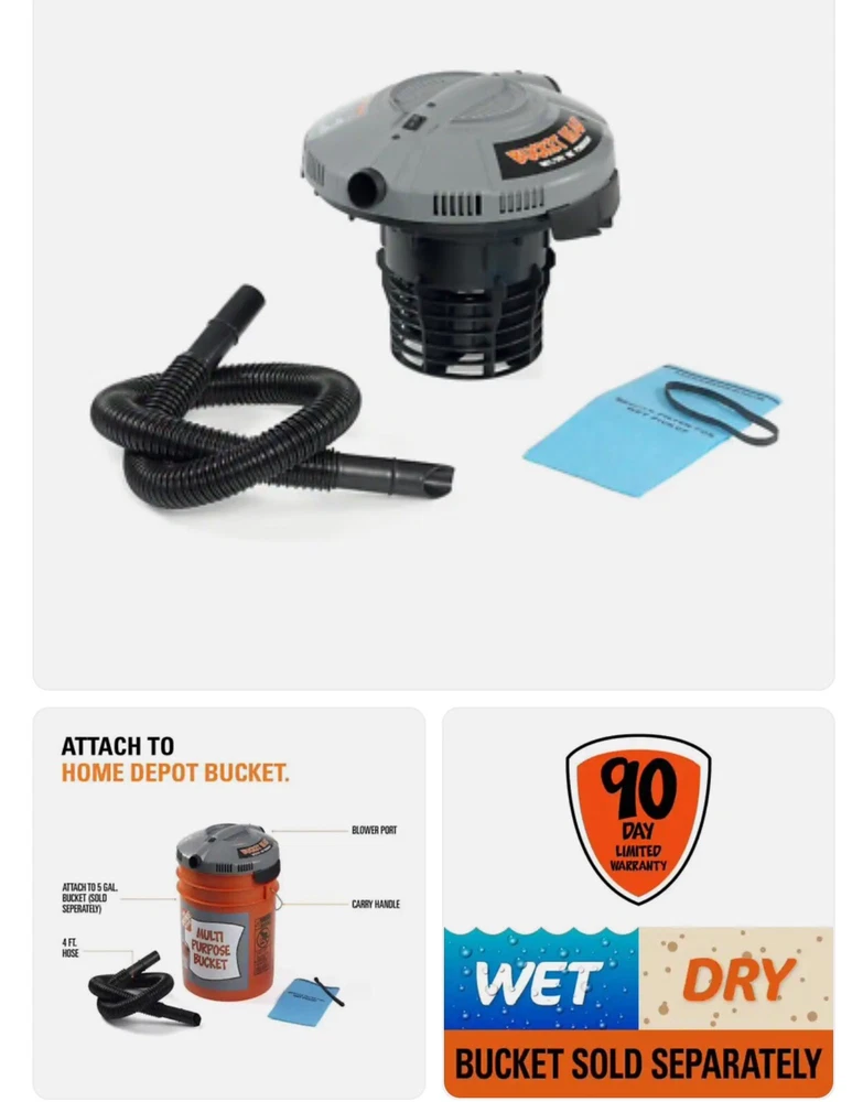 5 Gal. Bucket Head Wet Dry Vac - Portable Pro Industrial Vacuum Cleaner 1.75 HP