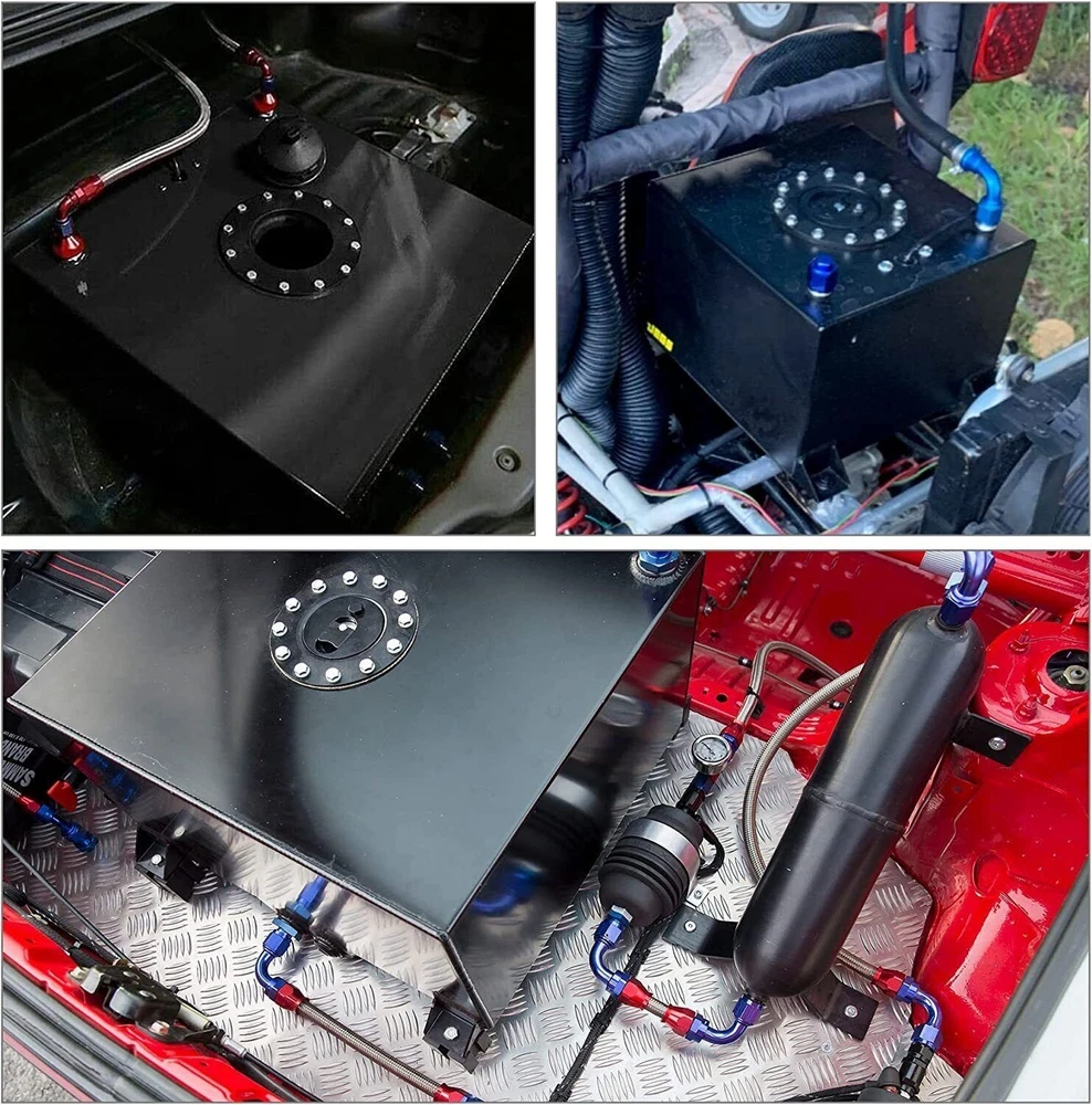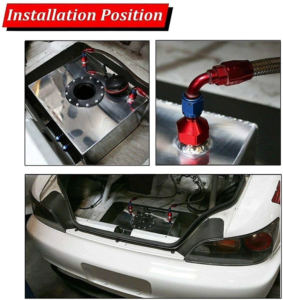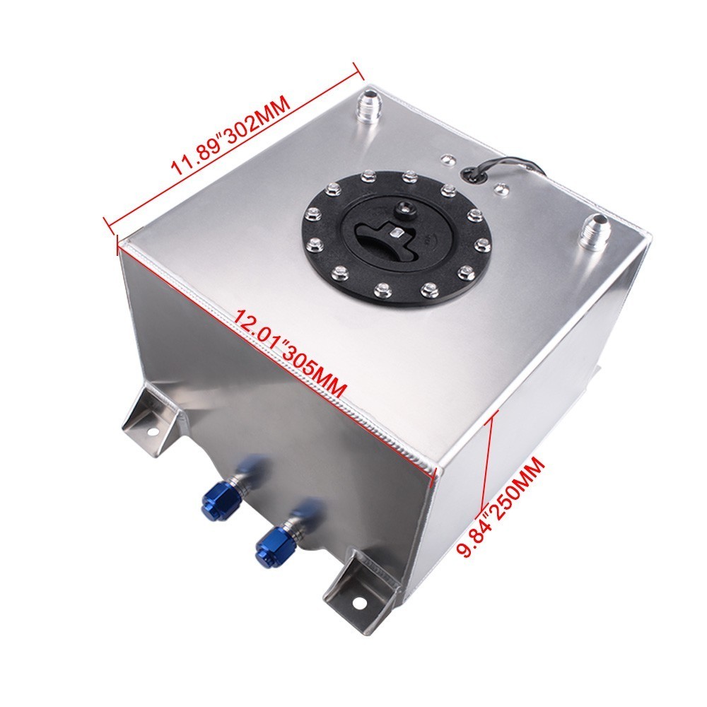 5 Gallon 20L Aluminum Fuel Cell Gas Tank+Cap+Level Sender+Nylon Fuel Line Kit SPECIFICATIONS: Type: Fuel Cell Gas Tank Material: Aluminum (Note: the material of cap is plastic.) Capacity: 5 Gallon / 20 L FEATURES: 100% Brand New and Never Used or Installed Integrated Sump0-90 Ohm Fuel Sender Quick Release Fuel Cap Dual -10 Outlets Dual -10 Vent Outlets (Top Of Cell) Installation Instruction is NOT Included Not for use with alcohol, methanol, water Inspect foam for deterioration regularly Fuel Tank and Cap made with high grade aluminum for extra protection FITMENT: Universal (Check the size before you order!!!) PACKAGE INCLUDE: 1 × Fuel Cell Gas Tank Kit 1 × 9.8Ft AN6 Fuel Line Kit 2 × 0 Degree 6AN Fuel Hose Fitting Adapters 2 × 45 Degree 6AN Fuel Hose Fitting Adapters 2 × 90 Degree 6AN Fuel Hose Fitting Adapters 2 × 180 Degree 6AN Fuel Hose Fitting Adapters 2 × 6AN to 10AN Fuel Hose Fitting Adapters All accessories in the picture are included. NOTE: 1. Please allow 0.5-1 inch difference due to manual measurement. (1 inch=2.54cm) 2. Please check the size measurement and the picture carefully before making payment. 3. Due to the difference between different monitors, the picture may not reflect theactual color of the item. Please understand, Thank you. SHIPPING INFORMATION PAYMENT WARRANTY ABOUT US CONTACT US SHIPPING INFORMATION We will only ship this item to buyers by Normal Mail, please confirm your address is correct, and if you want to change the delivery address, just feel free to contact us when you purchase. Usually, we will ship the orders out and upload the tracking number within 1-2 business days(Monday to Saturday from 8:30am-5:30pm) after you complete the payment. PAYMENT We will only accept eBay payment. Please pay using eBay payment ONLY within 7 days from the date of transaction be made. WARRANTY Please inspect your order upon receipt.No damage claims will be honored after 14 days of delivery. All item we sold come with 90 days defective warranty from the date. ABOUT US We are a powerful factory producing auto parts,and we have a professional sales and after-sales team that can provide you with excellent products and services. CONTACT US For any reason you want to contact us,We aim at satisfying every visitor, no matter what kind of situation you meet with, we will be right here to serve you. Please contact our team. If you are happy with the transaction with us, leaving us an ALL-5-STAR positive feedback would be greatly appreciated. Have a good shopping.