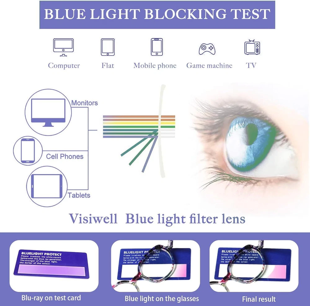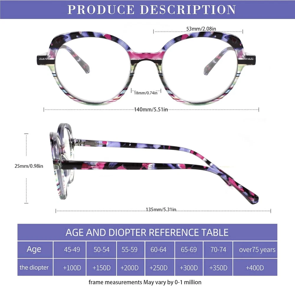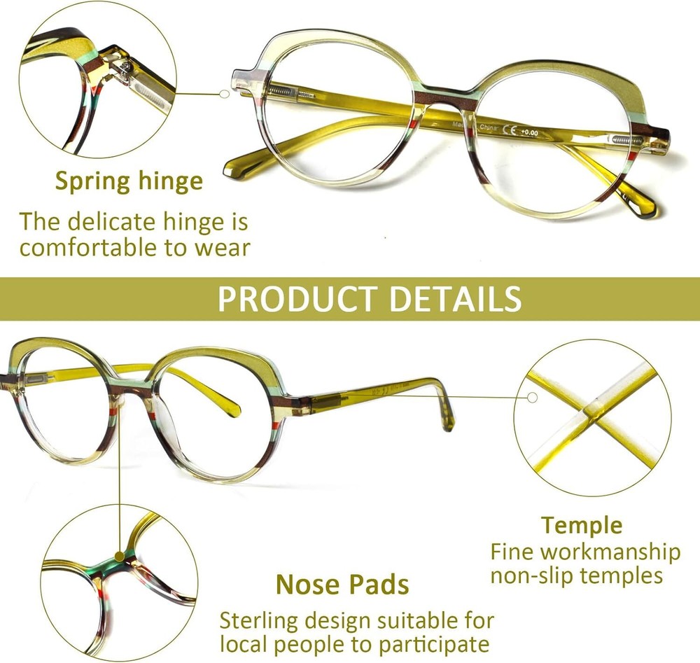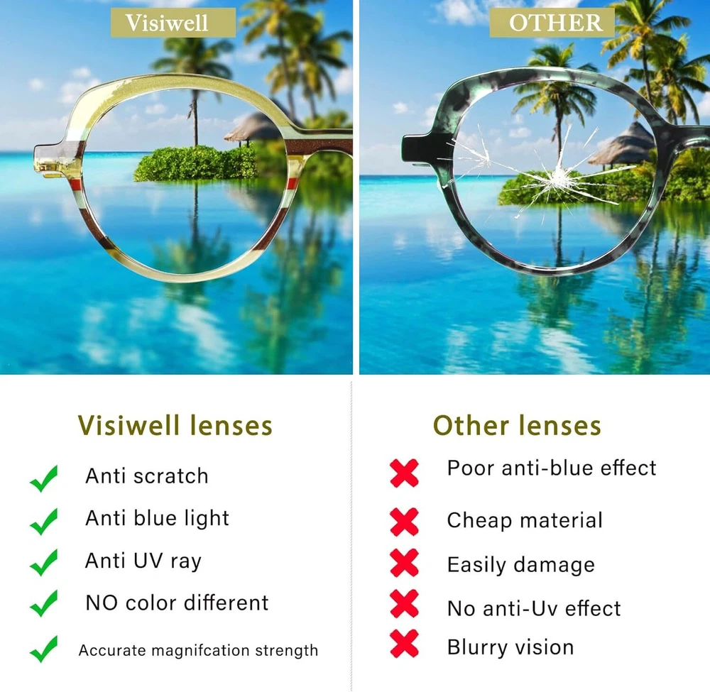 Product Description Visiwell brand mainly develops and designs all kinds of anti-blue glasses, reading glasses, sunglasses and so on.Using high-quality materials and excellent production technology, we provide customers with a variety of high-quality glasses. With a stylish cat eye design and colorful patterns, these reading glasses are suitable for women of all ages.High quality anti-blue light reading lens, effectively isolate UV and radiation, filter harmful blue light, suitable for computer, TV, mobile phone and other digital electronic products, while maintaining high-definition and clear vision, but also reduce eye fatigue.The flexibility of a high-quality spring hinge reduces potential damage to your glasses and also provides you with additional comfort during wear.Our brand is committed to bringing practical, more comfortable glasses to every customer, focusing on protecting vision health.