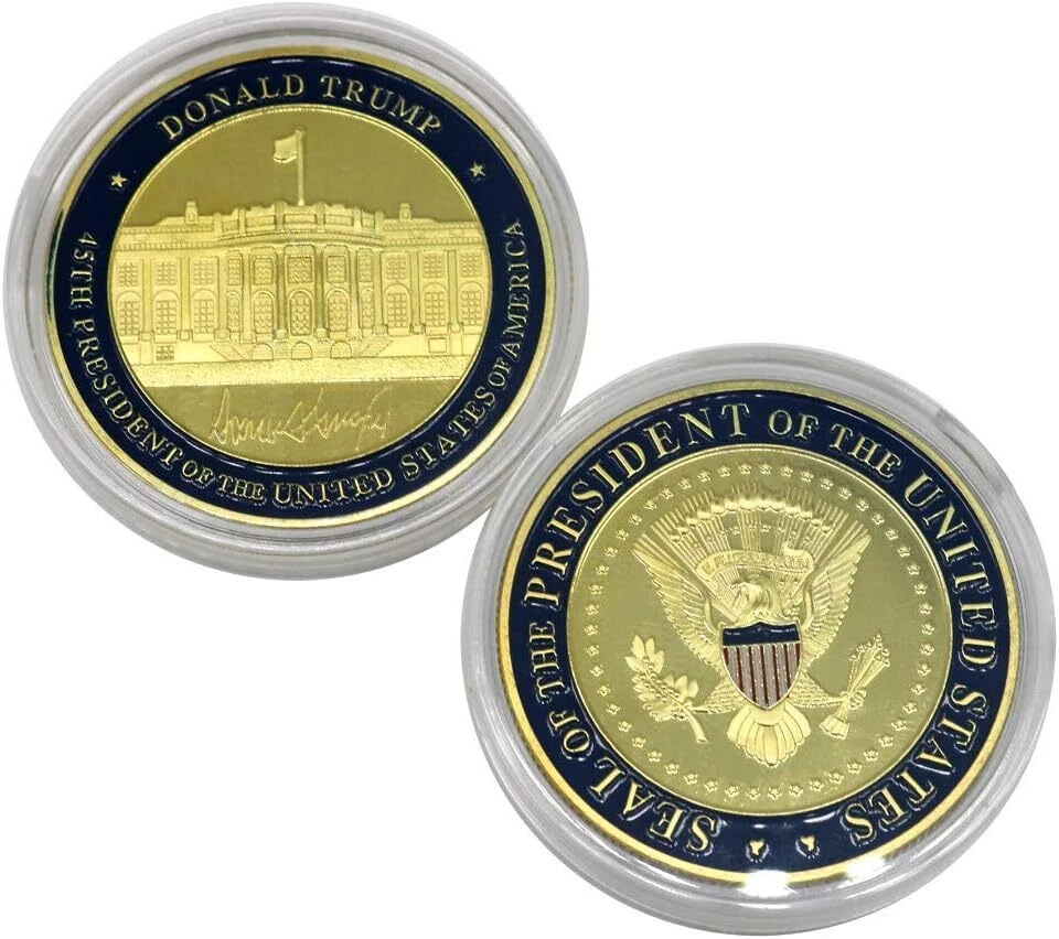 Free eBay listing template designed by dewiso.com 5 Pack Donald Trump Gold Plated Coin, Seal of The President Challenge Coins, Commemorative Gift with Case and Stand FREE AND FAST SHIPPING! About this item 5 PACK: 5x President Trump gold plated coins. Made of zinc alloy with enamel. Measures 1.5 inches diameter 35mm thick. Each coin comes encapsulated in a clear protective case to avoid oxidation. Perfect for gift giving, and fun to have. › Product We offer a 30-Day Return Policy on items which you are not completely satisfied with. You have the option for a full-refund or an exchange of the item. No returns are available on items shipped outside of the US . Shipping We offer Free Shipping to the US and ship within 2 business days of payment, usually sooner. We use UPS express shipping. That's why your products are usually delivered within 3 days . Contact We try our very best to make sure every customer is completely satisfied. If there's a problem , message us! We're happy to help. 24/7 live chat available.