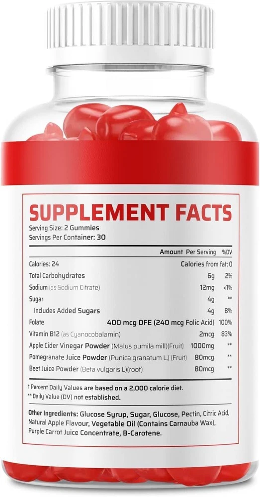 All Of The Powerful Benefits - None Of The Vinegar Flavor! When most people think of apple cider vinegar, they have mixed emotions. While they enjoy the must-have gut health benefits, they aren't particularly fond of the potent, vinegary flavor. Luckily, our gummies were made with a powerful AND tasty formula that you'll love. Our delicious harvest apple gummies are designed to give you a flavor you'll crave and the benefits you'll love all wrapped up in a delectable little chew. Ingredients: Apple Cider Vinegar, Beet Juice, Beet Root, Pectin, Sodium, Iodine, Maltose Syrup, Sugar, Maltodextrin, Pectin, Citric Acid, Sodium Citrate, Natural Apple Flavor, Beet Red, Vegetable Oil (Contains Carnauba Wax) Directions: As a dietary supplement, take 2 gummies per day. For best results take 20-30 minutes before a meal with an 8oz glass of water or as directed by your health care professional. BENEFITS Made with 'the Mother'. Delivering a maximum strength serving of apple cider Vinegar with 'the Mother,' Our Apple cider Vinegar gummies offer a premium blend of naturally occurring probiotics. Our Apple cider Vinegar gummies formula is designed to help support a healthy metabolism. No nasty ACV shots, no bad taste, just grab your keto gummies and stay in ketosis at home or on the road. Clean Products Made In The USA -All of our products are GMP Certified Good Manufacturing Practice and proudly made here in the USA.