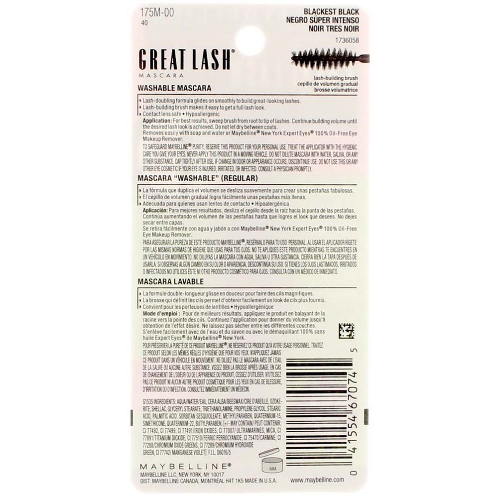 Product Description Maybelline New York’s Great Lash Washable Curved Brush Mascara, America’s favorite mascara is back with a curved brush! The thickening mascara features a lash-doubling formula that glides on to build great-looking lashes. The custom curved brush lifts each lash for the perfect curl and thickness. The hypoallergenic formula is ophthalmologist tested and safe for contact lens wearers. Complete your eye makeup look with Maybelline New York’s fan favorite Master Precise Liquid Eyeliner and your favorite City Mini Eyeshadow Palette. Lash-doubling hypoallergenic formula that glides on smoothly to create great-looking voluminous lashes Great Lash washable volumizing mascara is suitable for contact lens wearers and ophthalmologist tested Features a curved brush to lift, define and curl each lash for the ultimate sophisticated and chic makeup look Great Lash Curved Brush washable mascara is available in shades ranging from Blackest Black to Very Black Lengthening and volumizing washable mascara that is clean and easy to remove without any rubbing or scrubbing Ingredients Water, Beeswax, Ozokerite, Shellac, Glyceryl Stearate, Triethanolamine, Propylene Glycol, Stearic Acid, Palmitic Acid, Sorbitan Sesquioleate, Methylparaben, Quaternium-15, Simethicone, Quaternium-22, Butylparaben. (+/- May Contain: Ci 77492, Ci 77491, Ci 77499/Iron Oxides, Ci 77007/Ultramarines, Mica, Ci 77891/Titanium Dioxide, Ci 77510/Ferric Ferrocyanide, Ci 75470/Carmine, Ci 77288/Chromium Oxide Greens, Ci 77289/Chromium Hydroxide Green, Ci 77742/Manganese Violet.). Instructions Hold the custom curl brush at the inside curve to align with the base of lashes Coat from the root to tip of lashes Do not let mascara dry in between coats Easily remove mascara with Maybelline Expert Eyes 100% Oil-Free Eye Makeup Remover Product Description Maybelline New York‚Äôs Great Lash Washable Curved Brush Mascara, America‚Äôs favorite mascara is back with a curved brush! The thickening mascara features a lash-doubling formula that glides on to build great-looking lashes. The custom curved brush lifts each lash for the perfect curl and thickness. The hypoallergenic formula is ophthalmologist tested and safe for contact lens wearers. Complete your eye makeup look with Maybelline New York‚Äôs fan favorite Master Precise Liquid Eyeliner and your favorite City Mini Eyeshadow Palette. Lash-doubling hypoallergenic formula that glides on smoothly to create great-looking voluminous lashes Great Lash washable volumizing mascara is suitable for contact lens wearers and ophthalmologist tested Features a curved brush to lift, define and curl each lash for the ultimate sophisticated and chic makeup look Great Lash Curved Brush washable mascara is available in shades ranging from Blackest Black to Very Black Lengthening and volumizing washable mascara that is clean and easy to remove without any rubbing or scrubbing Ingredients Water, Beeswax, Ozokerite, Shellac, Glyceryl Stearate, Triethanolamine, Propylene Glycol, Stearic Acid, Palmitic Acid, Sorbitan Sesquioleate, Methylparaben, Quaternium-15, Simethicone, Quaternium-22, Butylparaben. (+/- May Contain: Ci 77492, Ci 77491, Ci 77499/Iron Oxides, Ci 77007/Ultramarines, Mica, Ci 77891/Titanium Dioxide, Ci 77510/Ferric Ferrocyanide, Ci 75470/Carmine, Ci 77288/Chromium Oxide Greens, Ci 77289/Chromium Hydroxide Green, Ci 77742/Manganese Violet.). Instructions Hold the custom curl brush at the inside curve to align with the base of lashes Coat from the root to tip of lashes Do not let mascara dry in between coats Easily remove mascara with Maybelline Expert Eyes 100% Oil-Free Eye Makeup Remover Suggested Use Sweep brush from root to tips of lashes. Continue building volume until the desired lash look is achieved. Do not let dry between coats. Removes easily with Expert Eyes 100% Oil-Free Eye Makeup Remover. Warnings Safety Warning: To safeguard purity, reserve this product for your personal use. Treat the applicator with the hygienic care you give your eyes. Never apply this product in a moving vehicle. Do not dilute with water, saliva, or any other substance. Cap tightly after use. If a change in odor or appearance occurs, discontinue use. Do not use this or any other cosmetic if your eye is injured, irritated, or infected. Consult a physician promptly. Disclaimer The product descriptions and instructions provided by vitabox.com are for informational purposes only and are qualified in their entirety by the information available from manufacturers of the products. You should carefully read all product packaging, and contact the manufacturer with any questions before using a product. While we endeavor to ensure that product descriptions are current, manufacturers sometimes change their products. We are not liable for inaccuracies or misstatements about products. We do not provide medical advice or recommendations. You should not use the information provided by vitabox.com for diagnosing or treating a health problem or disease. If you have or suspect that you have a medical problem, immediately contact your health care provider. Information and statements regarding dietary supplements have not been evaluated by the Food and Drug Administration or any other government agency and are not intended to diagnose, treat, cure, or prevent any disease.