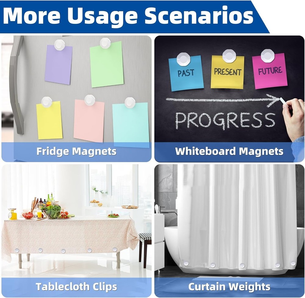 5 Pairs Shower Curtain Magnet Weights Bottom (White) NEW Product Description: Heavy Duty Plastic Wrapped Shower Curtain Weights Heavy Duty Performance: Our Heavy Duty Plastic Wrapped Shower Curtain Weights ensure no more annoyance with blowing shower curtains or drapery, allowing you to enjoy relaxing showers and outdoor activities without interruptions. Premium Material for Durability: Made from high-quality plastic material, these weights are dust-proof and waterproof, providing all-around protection to prevent rust and crashes, ensuring a long-lasting product life. Super Strong Magnetic Force: Experience unmatched magnetic strength with our shower curtain weights. They firmly attach even to 5mm thick curtains, preventing them from falling off and keeping your shower experience perfect. Easy and Quick Installation: No tools needed! Simply bring two magnets together, and they will attach automatically. Install and rearrange in seconds, making it a hassle-free solution for everyone. Discrete and Sleek Design: Carefully designed to be both simple and sleek, our weights seamlessly fit into any home decor. Consider them a high-quality accessory that adds functionality without sacrificing style. About this item: [Rust-Free Sophistication] Our Shower Curtain Magnets Weights feature a sleek design, 360° wrapped in plastic with no exposed magnets. No more rust marks on your shower curtains, drapery, or tablecloth. [Powerful Magnetism, Anywhere] Strong magnets provide a reliable grip, preventing drops and allowing placement on any curtain. Enjoy peaceful curtains, even on windy days. [Easy to Install and Carry] These weighted shower curtain liners are a breeze to install and remove. Simply place the bottom-heavy block at the curtain's base for stability. Convenient and portable for on-the-go use. [Versatile Indoors and Outdoors] Bathroom weights are perfect for shower curtains, tablecloths, magnetic whiteboards, and refrigerator magnets indoors. Outdoors, they serve as patio curtain and flag weights. [Stability in Every Setting] Upgrade your curtain game with elegance, strength, and convenience. Whether at home or outdoors, enjoy stability with our Shower Curtain Magnets Weights. Shower Curtain Weights Bottom Heavy Shower Curtain Magnets Weights Outdoor Shower Curtain Weights Bottom Heavy Magnetic Flag Weights for Wind Shower Magnets for Curtain Liner Heavy Shower Curtain Liner Weighted Color White Material Plastic Brand WitMonkey Item Weight 0.55 Pounds Number of Pieces 12