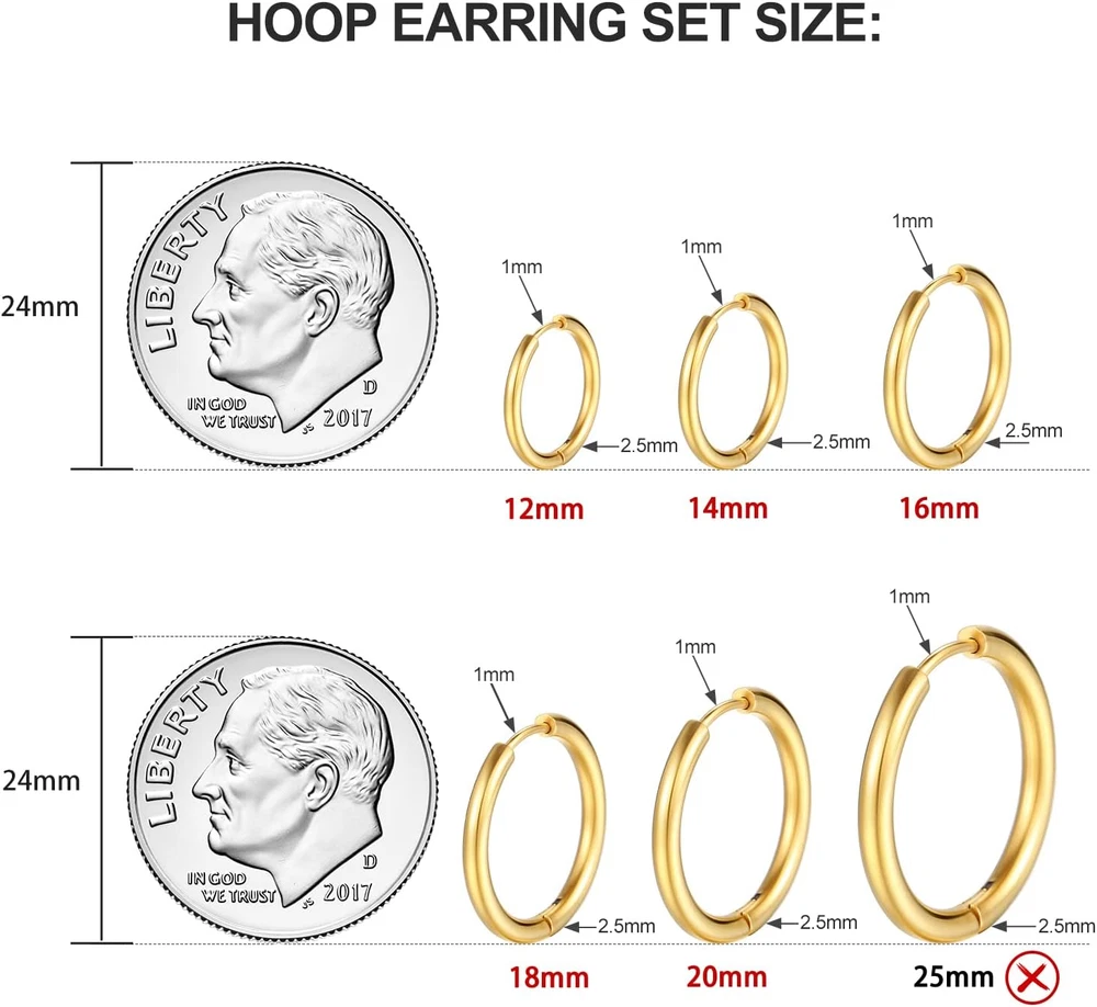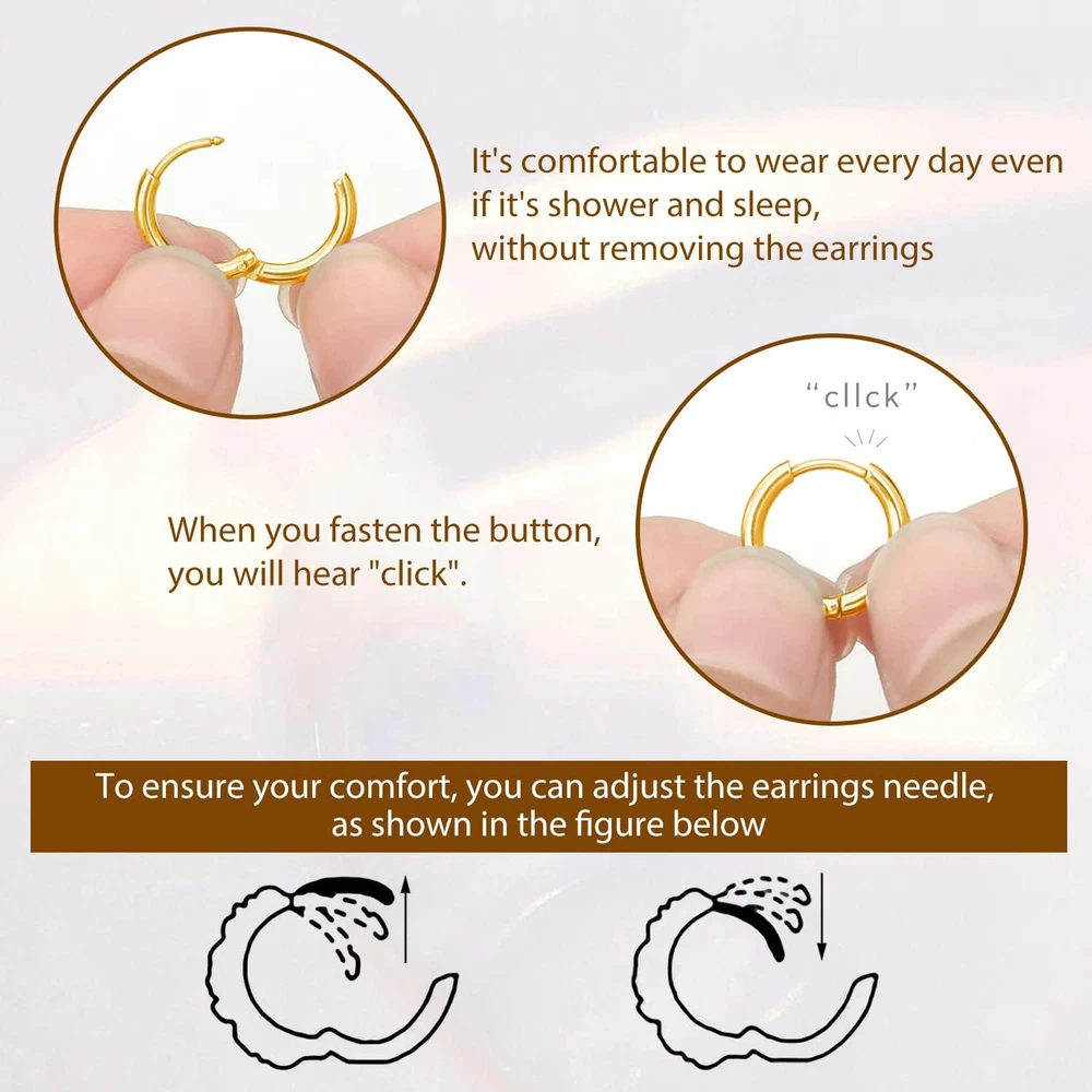 Store New Arrivals Add to Favorite View Feedback Contact Fast deliveries to the customer's home Quality customer service John Make the customers happy! 5 Pairs Silver Gold Hoop Earrings Set for Women - 14K Real Gold Plated Hypoallergenic Chunky Small Gold Earrings Set Cartilage Huggie Hoops Pack for Women Men Earrings Set Different Size Description Product Description About PICKBEAU Brand "PICKBEAU"-Pick Your Beauty! We’re all about making quality, sustainable jewelry that you can wear everyday—from routine days to special occasions. Meeting your desire to stay on top of trends. Whether it's for a special gift or a treat for yourself, discover the beautiful and fashionable collections of PICKBEAU jewelry. Each item showcases the true beauty and style of PICKBEAU design. We PICKBEAU have many products, such as earrings, necklaces, anklets, bracelets for women and men, and all kinds of jewelries.Cute and stylish, fit for any occasion. These small gold hoop earrings ste are Hypoallergenic, Nickel and Lead-Free, No Rust and Fading. Solid 18K gold plated. These classical earrings has beautifully packaged and ready for gift giving. Cute and stylish, trendy design bar huggies earrings perfect fit for any occasion, casual to formal. It adds a certain elegant yet alluring element to any outfit and a better choice of jewelry for daily wearing. Classic Cartilage Hoop Earrings Simple but classic earrings For Women Men, will never be out of style. These small hoop earrings are suitable for both women and men. These can be used as cartilage hoops, lobe earrings, second hole hoop earrings, helix earrings, tragus hoop earrings, sleeper earrings, upper lobe earrings etc. Stylish appearance for a variety of occasions. Gold Hoop Earring Set These can be used as cartilage hoops, lobe earrings, second hole hoop earrings, helix earrings, tragus hoop earrings, sleeper earrings, upper lobe earrings etc. Exquisite Craftsmanship The surface is plated with 18K real gold, lead-free and nickel-free, hypoallergenic, ensuring a long-lasting wearing experience.High Polish Smooth Surface, High Resistance to Rust and Corrosion Cartilage Hoop Earrings Delicate and lightweight, these chunky hoop earrings are so comfortable that you won't even feel them.Suitable for all styles Gold Hoops Earring Size This PICKBEAU earrings are avaliable in 8mm/10mm/12mm/14mm/16mm/18mm/20mm/25mm, the different sizes offer the opportunity to mix and match with other earrings, you can match them as you like. The perfect size to where they don’t get caught on anything, especially for who have curly hair. Metal stamp 18k Gem Type No Gemstone Color Gold--12/14/16/18/20mm Material Yellow Gold Metal Gold Item Length 3.9 inches ABOUT US We offer the best prices around on high quality products. Our E-store includes media such as books, movies, music and games while offering electronics, toys, sporting apparel, clothing, tools, general home, garden items and more. SHIPPING We are always working hard to ensure your package arrives as soon as possible. Please understand that some factors like weather, high postal traffic, and the performance of shipping companies are outside of our control. We offer free shipping to the lower 48 states and ship within 2 business days of payment, usually sooner. We do not accept P.O. Boxes. Please provide a physical address. For shipping outside of the continental USA, we only use eBay's Global Shipping Program. The item is shipped to KY and then sent to the rest of the world. International customers are responsible for all duties and taxes. Continue to 'check out' to calculate costs for shipping the item to your country. Messages regarding eBay's Global Shipping Program MUST be directed at eBay EXCLUSIVELY. RETURNS We offer a 30-Day Return Policy on items in which you are not completely satisfied with. You have the option of a full-refund or an exchange of the item. No returns are available on items shipped outside of the USA PAYMENT We accept PayPal. CONTACT US This page content is yet to come Please ad us to your favorite seller and visit again later Thank You CUSTOMER SATISFACTION We try our very best to make sure every customer is completely satisfied. If there's a problem, message us! We're happy to help. WE ACCEPT
