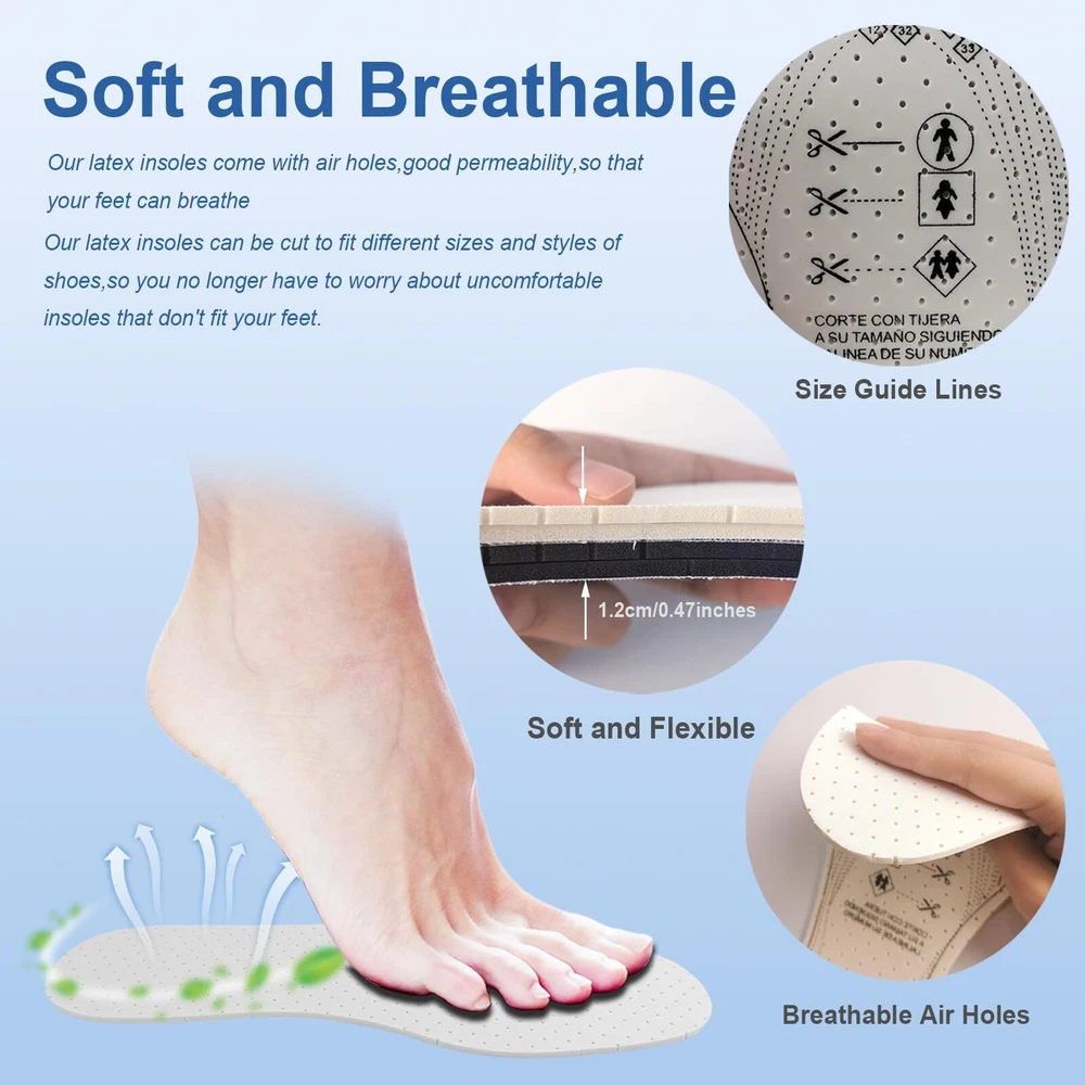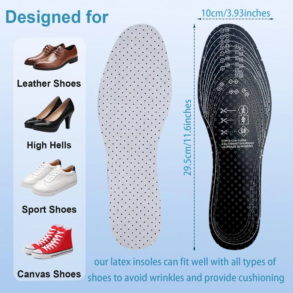 5 Pairs Unisex Breathable Cushioning Shoe Insoles Thin Shoe Pads Inserts Ultra Soft Walking Comfort Double Layer Latex Foam Perforated Insole Fit in Any Shoe for Men 7-11 Woman 1-8 (Black, Brown) Feature: Our latex insoles can be cut to fit different sizes and styles of shoes, so you no longer have to worry about uncomfortable insoles that don't fit your feet. Specification: Material: latex Size: as the picture shown Color: Black, Brown Package include: 5 pairs of 2 different colors of double latex insole Note: After delivery, please put the insole in a ventilated place to remove the smell, the smell will not affect the use of the insole. Due to different manual measurement methods, please allow slight size differences. The colors may exist slight difference due to different screen. Product Included: The package contains 5 pairs of 2 different colors of double latex insole, one thickness of about 0.3 mm, enough to meet your daily use and replacement needs Cool and Breathable: Our latex insoles come with air holes, air can circulate in your shoes, good permeability, so that your feet can breathe, more comfortable when walking, the surface of the fabric is good sweat absorption, also help to keep you feeling cool Soft and Comfortable: Are you still struggling with the insole not fitting, our insole fits your shoe perfectly, you can freely cut the size, which makes it fit almost any shoe (starting at UK 2 Women's / 35 EUR up to UK 11 Men's / 45 EUR), the soft insole features a great shoe fit, and the bottom layer of the grip foam is kept in place with less wrinkling and bunching Material: Double-layer latex foam insole made of rubber latex material, double-layer system provides soft cushioning, good shock absorption effect, lasting comfort, giving you a good user experience Designed for Everyday Use: This latex insole provides moderate control and support for your hiking shoes, work shoes and boots, while also providing a high level of comfort for most types of casual everyday footwear Shipping from the USA All of our products are shipped from the USA, ensuring quick delivery to your destination. Payment We offer the following payment methods: PayPal, credit card, bank transfer, and eBay's secure payment system. Free Shipping & Free Returns Shipping within the USA is FREE. Additionally, any return is absolutely free for you. Risk-Free Purchase You have the option to return an item within 30 days without any justification. We cover the return shipping costs! Fast Shipping We ship immediately upon receipt of payment. Generally, the package is delivered within 2-3 days in the USA. If it takes longer, we will contact you. Quality and Costs Made in Europe, USA, China No customs fees or additional charges Total satisfaction guarantee Invoice with declared VAT available upon request in .pdf format Feedback Your feedback is very important to us. After you pay for your purchase, you will automatically receive positive feedback from us.